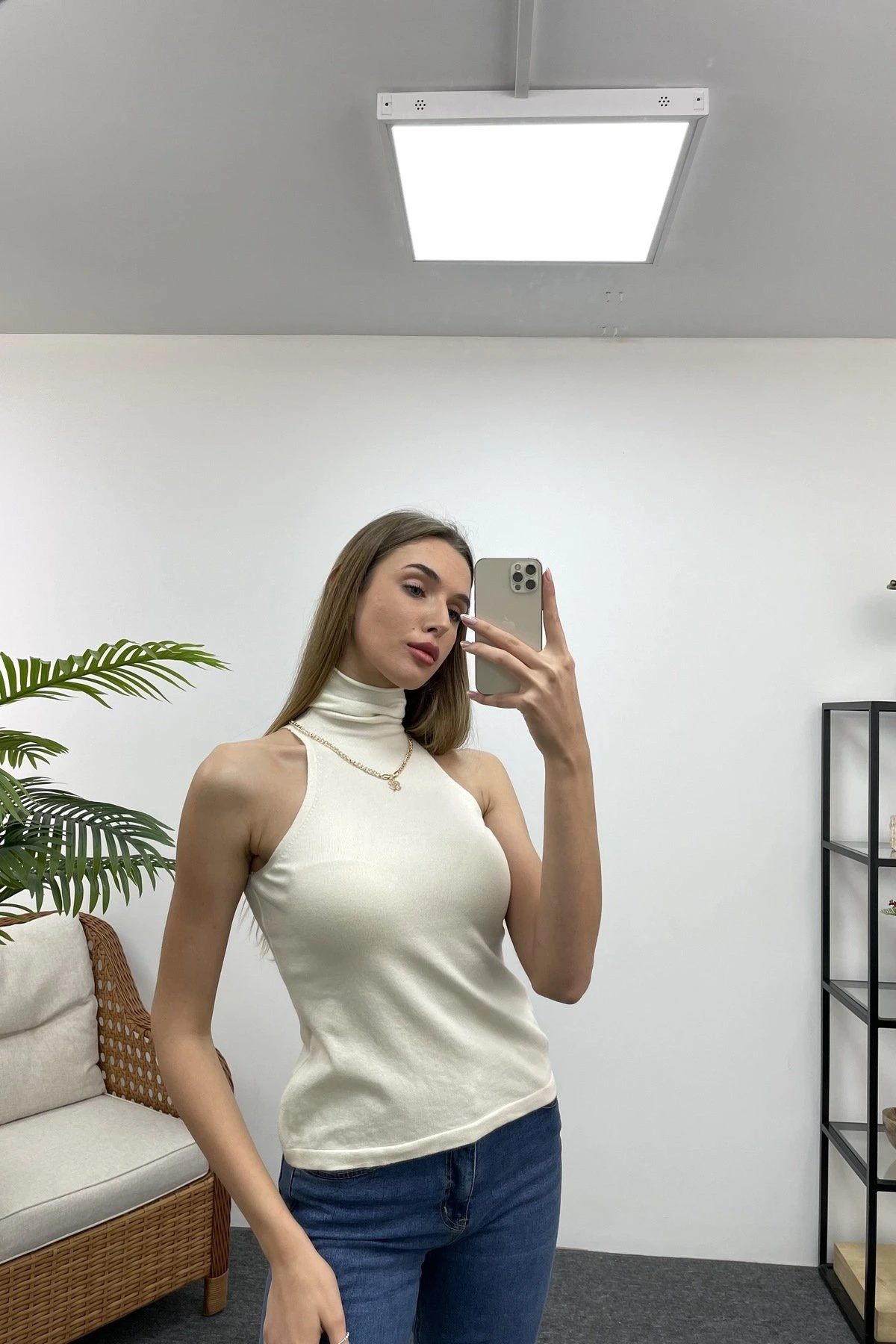 BALIKÇI YAKA SIFIR KOL TRİKO – KREM