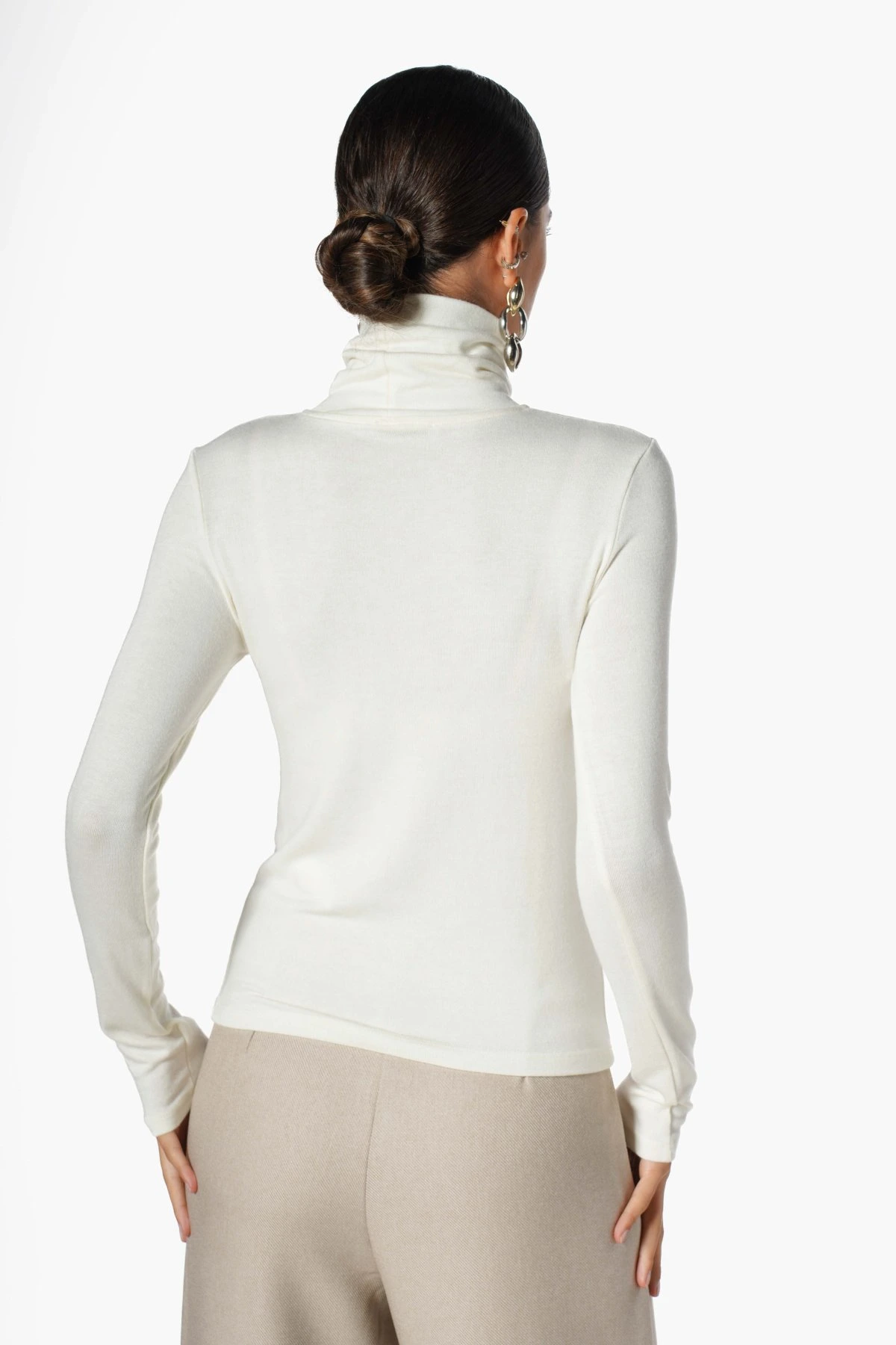 BALIKÇI YAKA UZUN KOL VİSKON TRİKO – EKRU