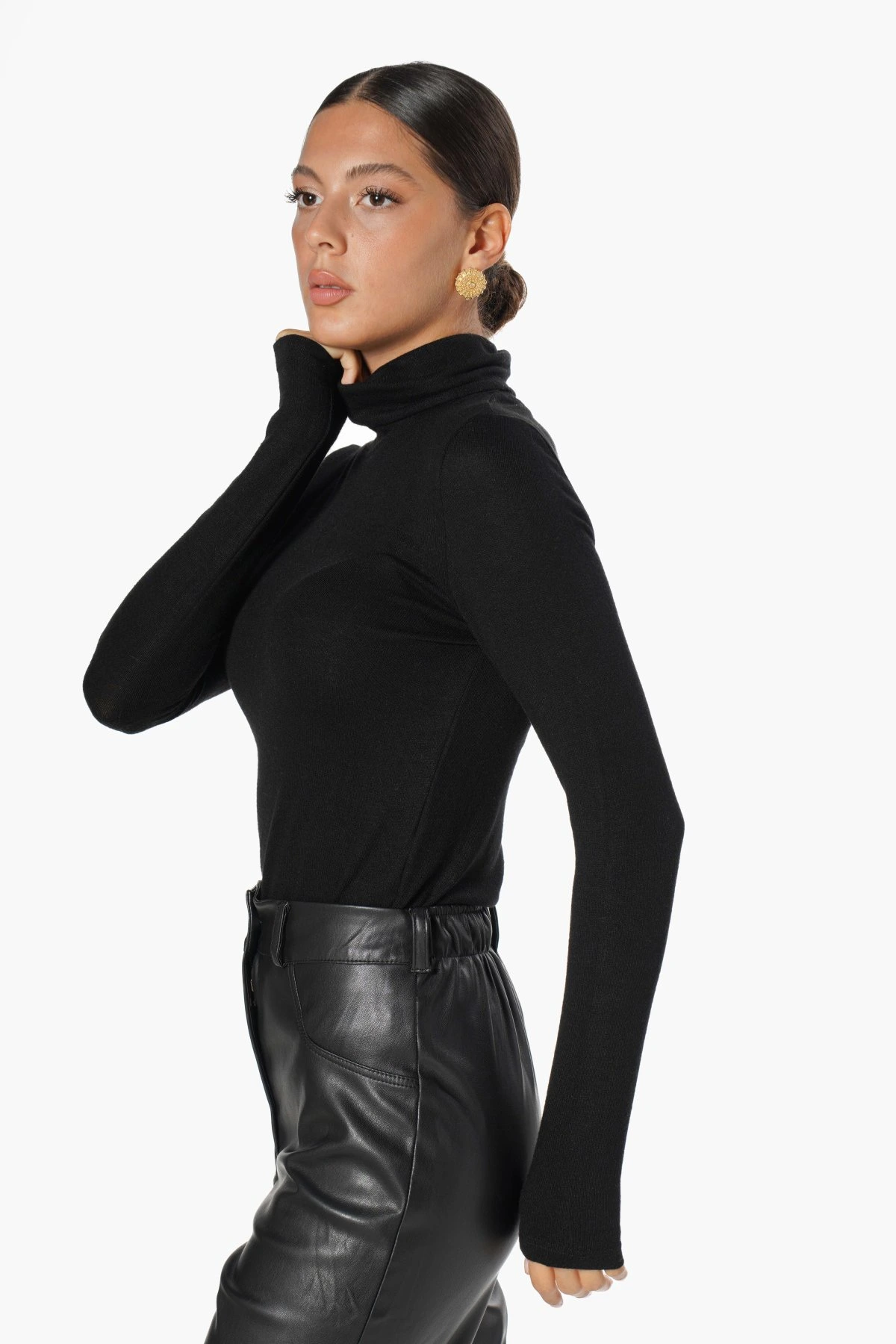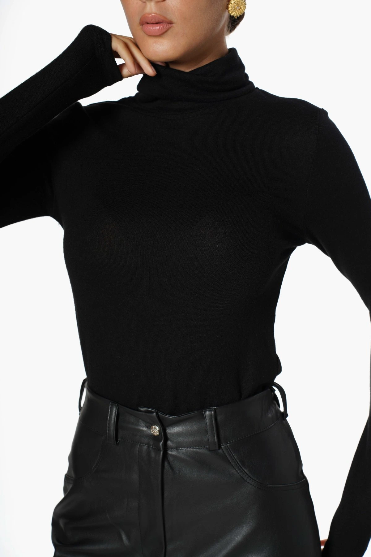 BALIKÇI YAKA UZUN KOL VİSKON TRİKO – SİYAH