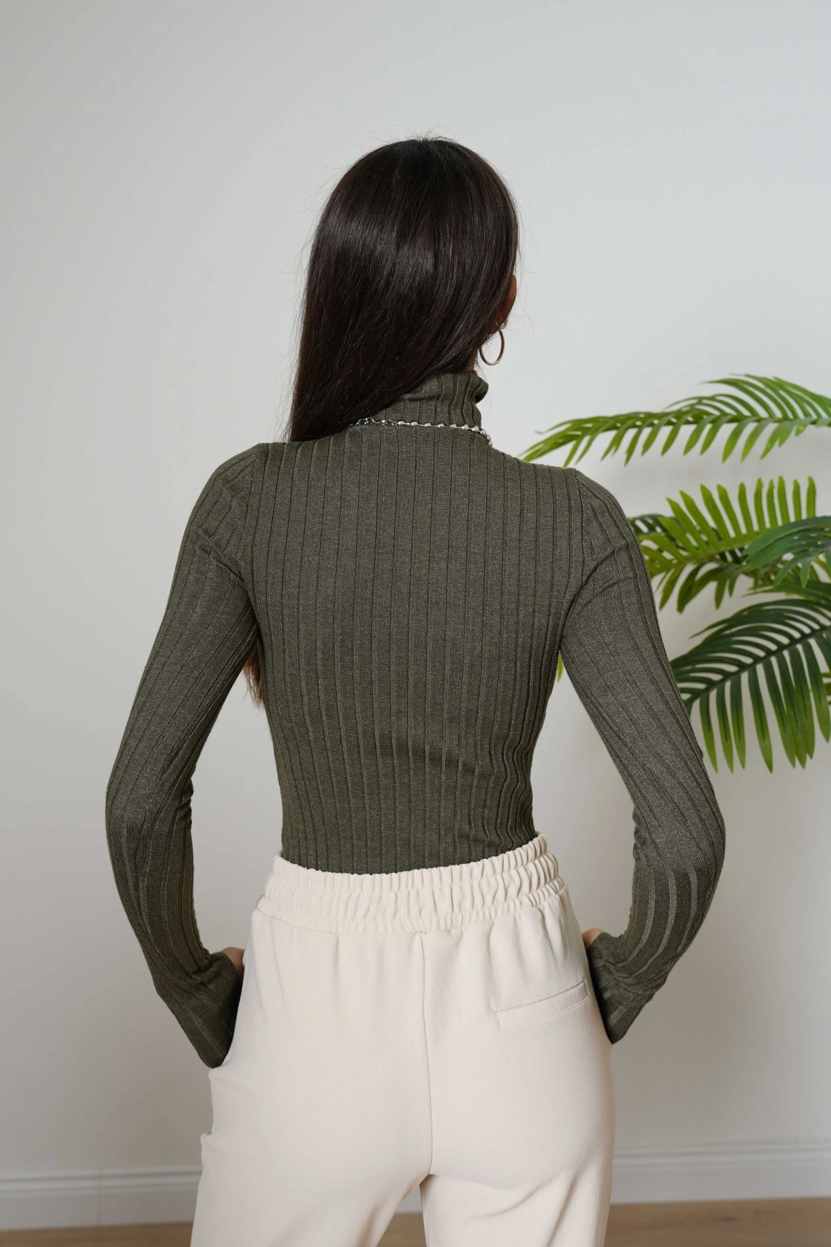 BALIKÇI YAKA VİSKON FİTİLLİ TRİKO – HAKİ