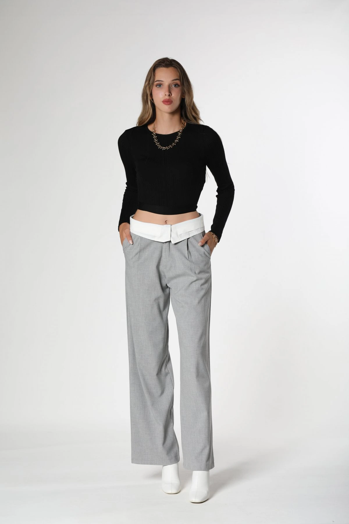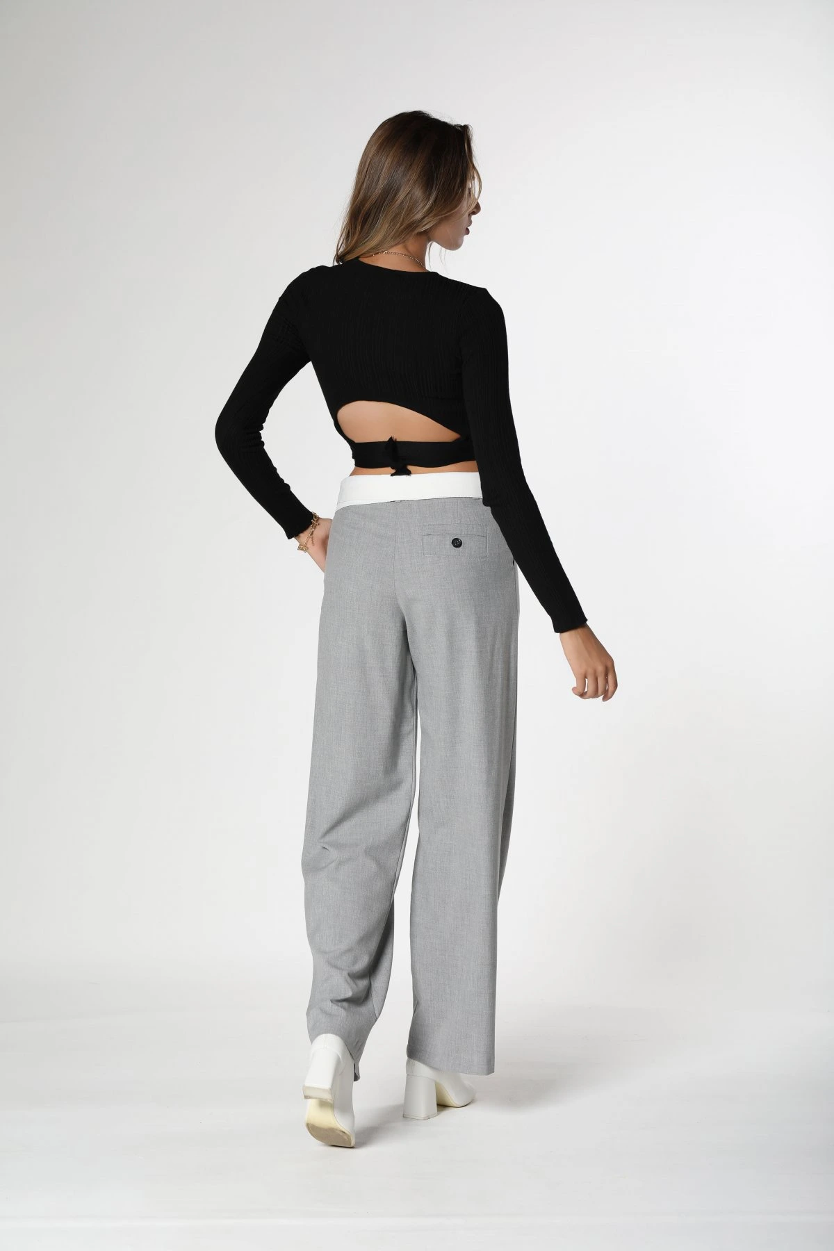 Modelin Üzerindeki Ürün, Serinin en küçük bedeni olan XS-S-26-34-36 Bedenleridir.