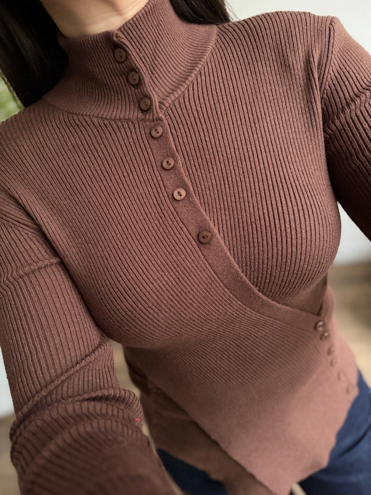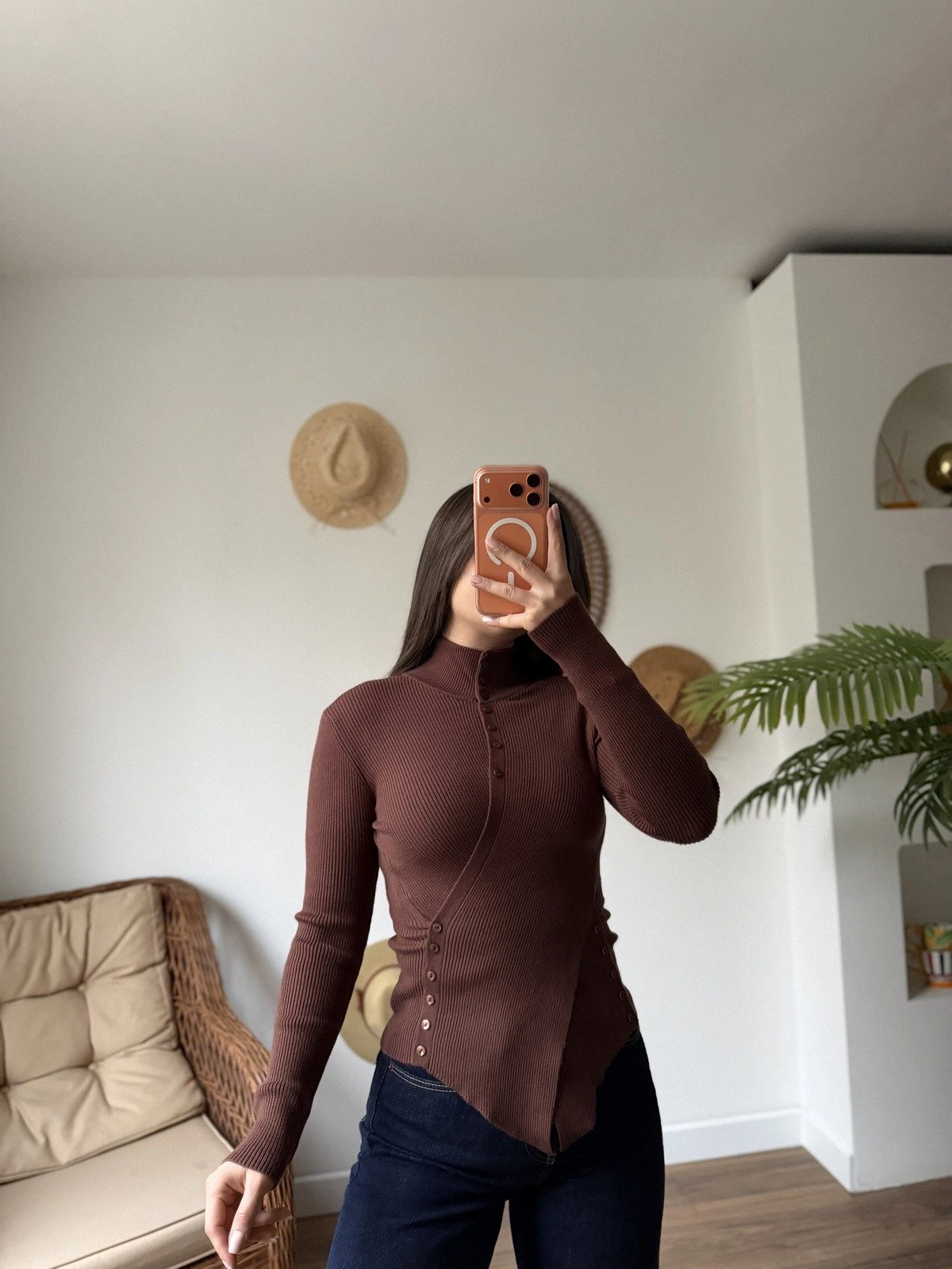 BELDEN DÜĞMELİ DİK YAKA VİSKON TRİKO – KAHVE