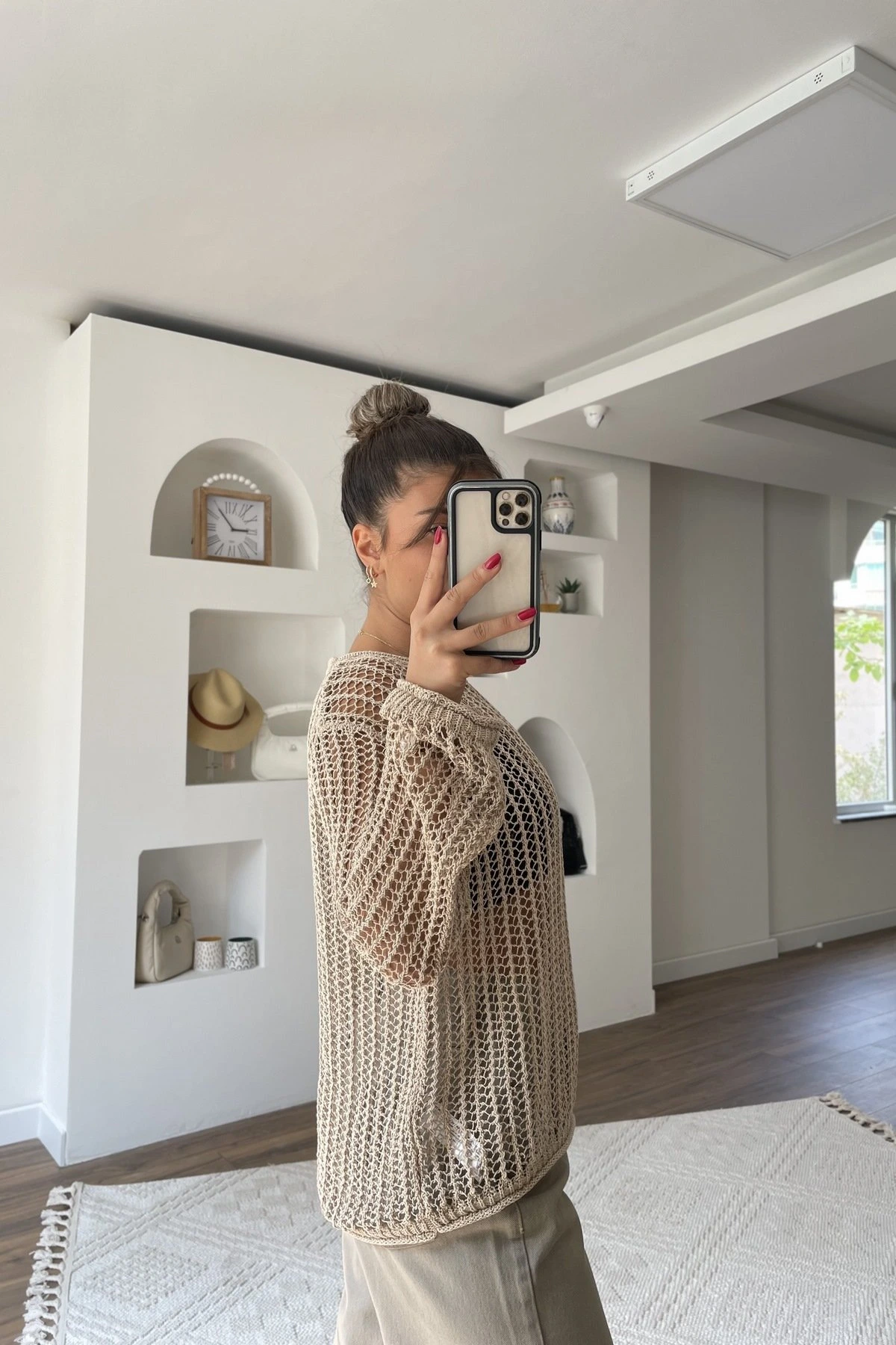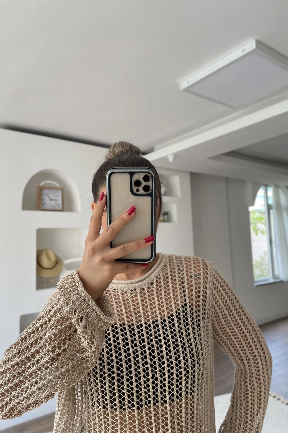 Modelin Üzerindeki Ürün bedeni instagramda story (hikayeler) de belirtilmektedir.