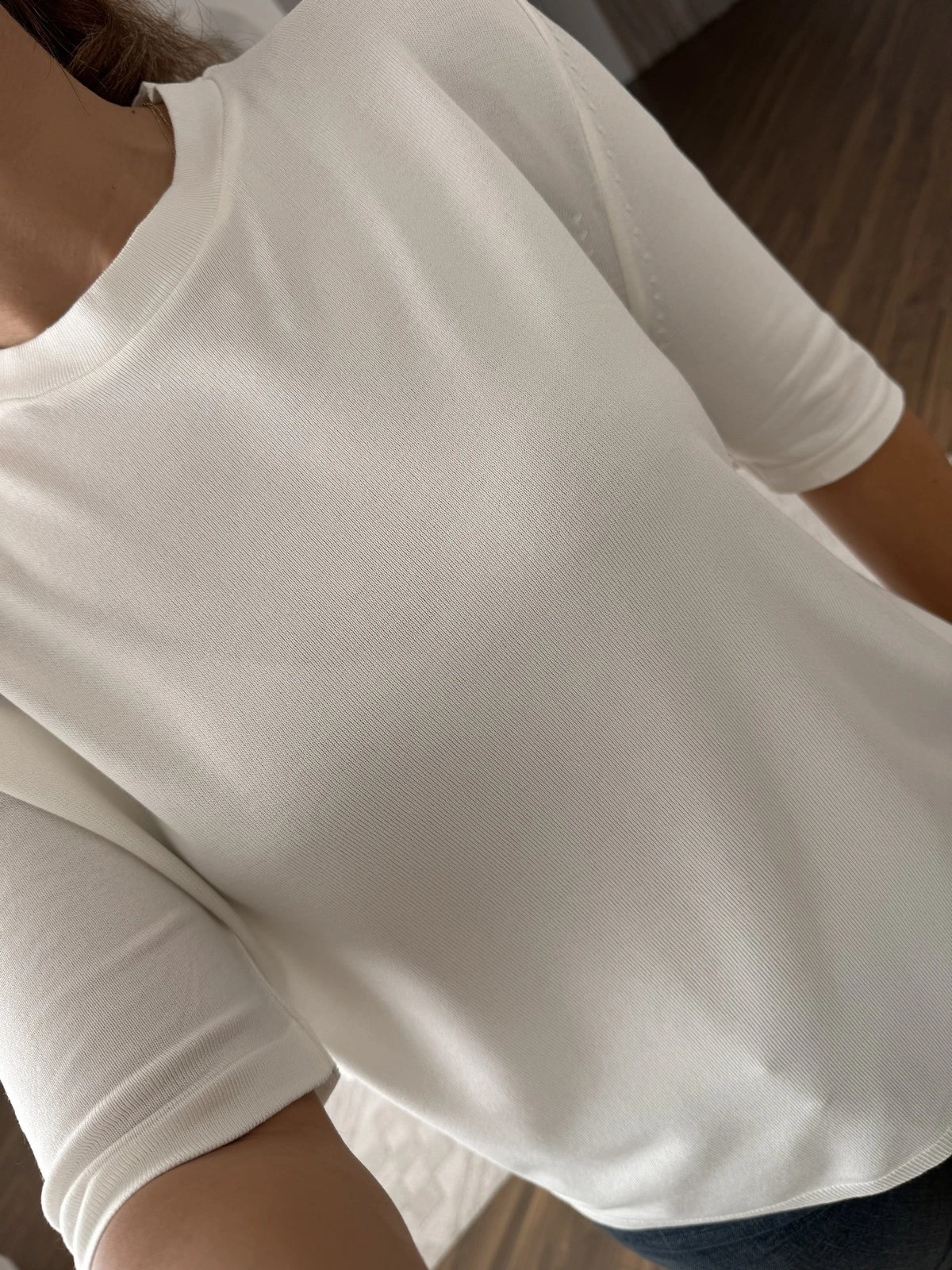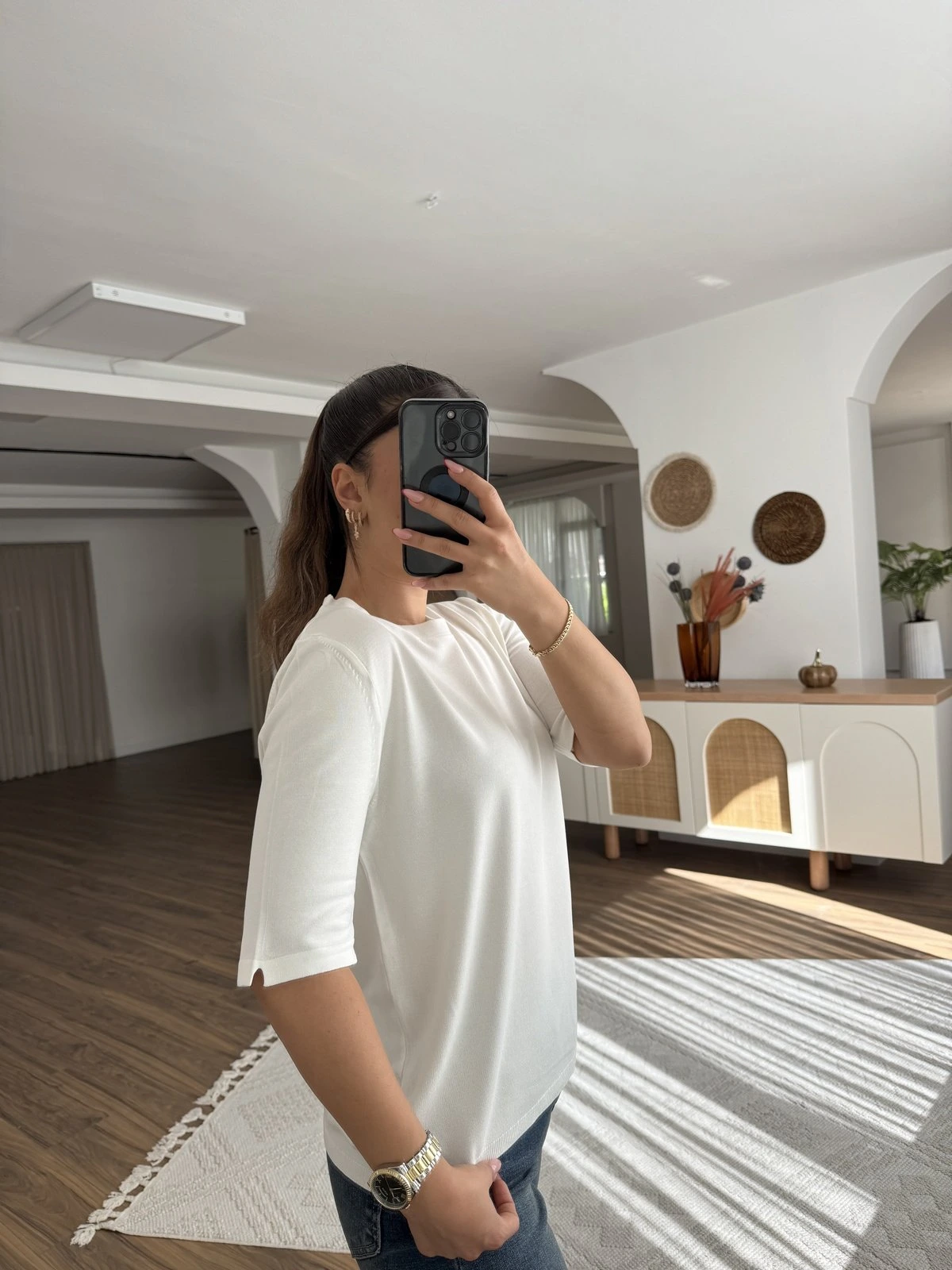 BİSİKLET YAKA ARKA DAMLA KISA KOL VİSKON TRİKO – EKRU