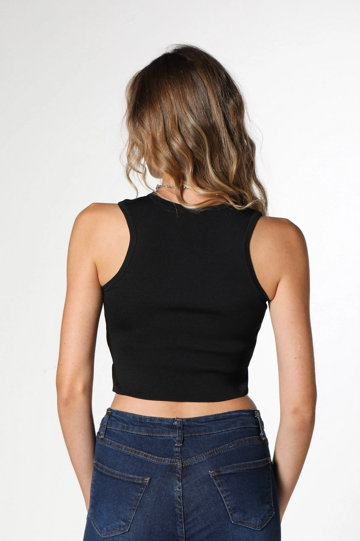 BİSİKLET YAKA BEL PENCERE CROP ATLET – SİYAH