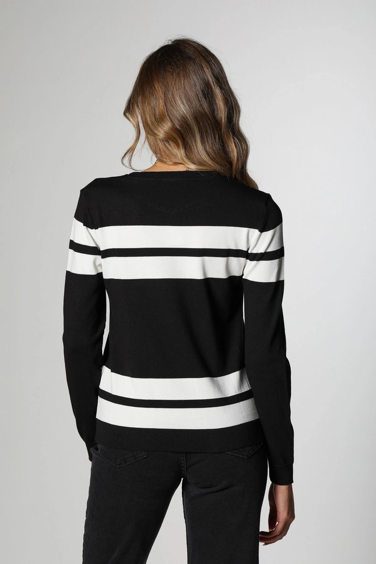 BİSİKLET YAKA ÇİZGİLİ VİSKOSE TRİKO – SİYAH BEYAZ