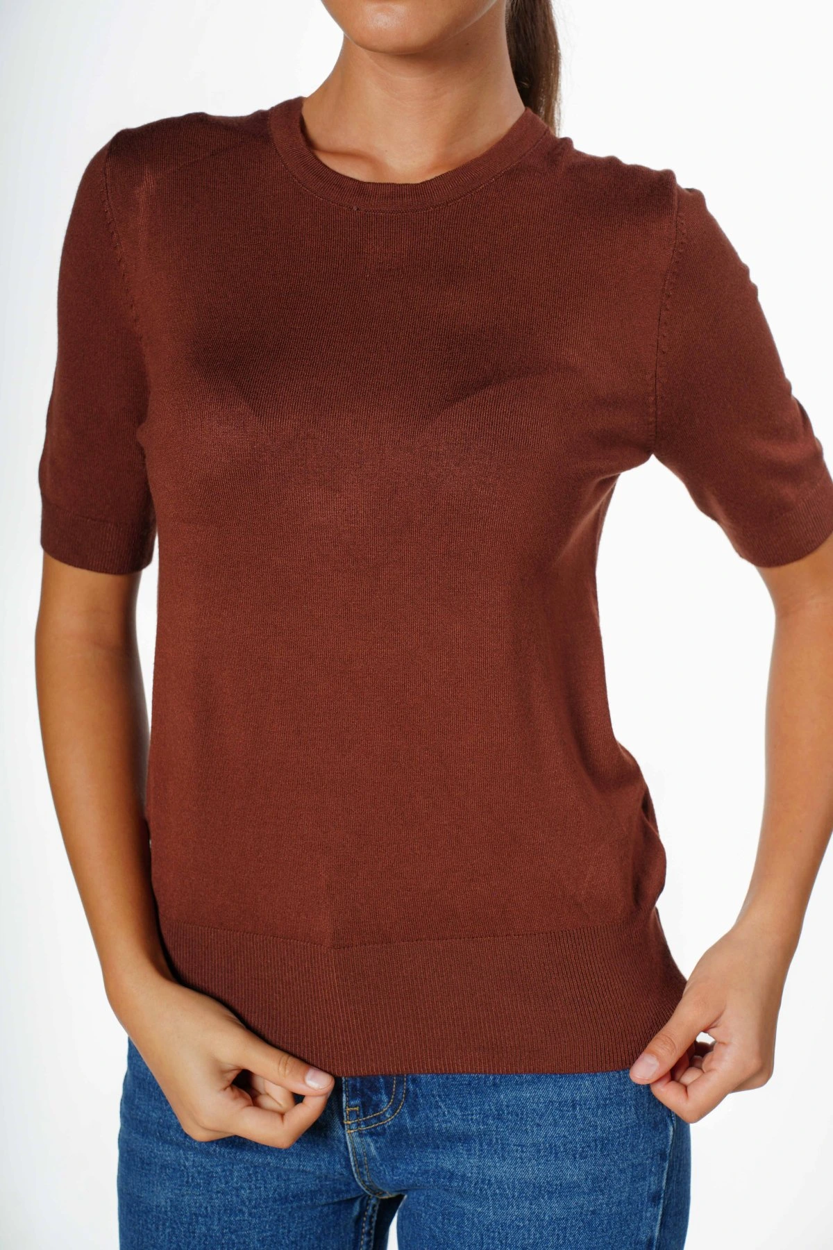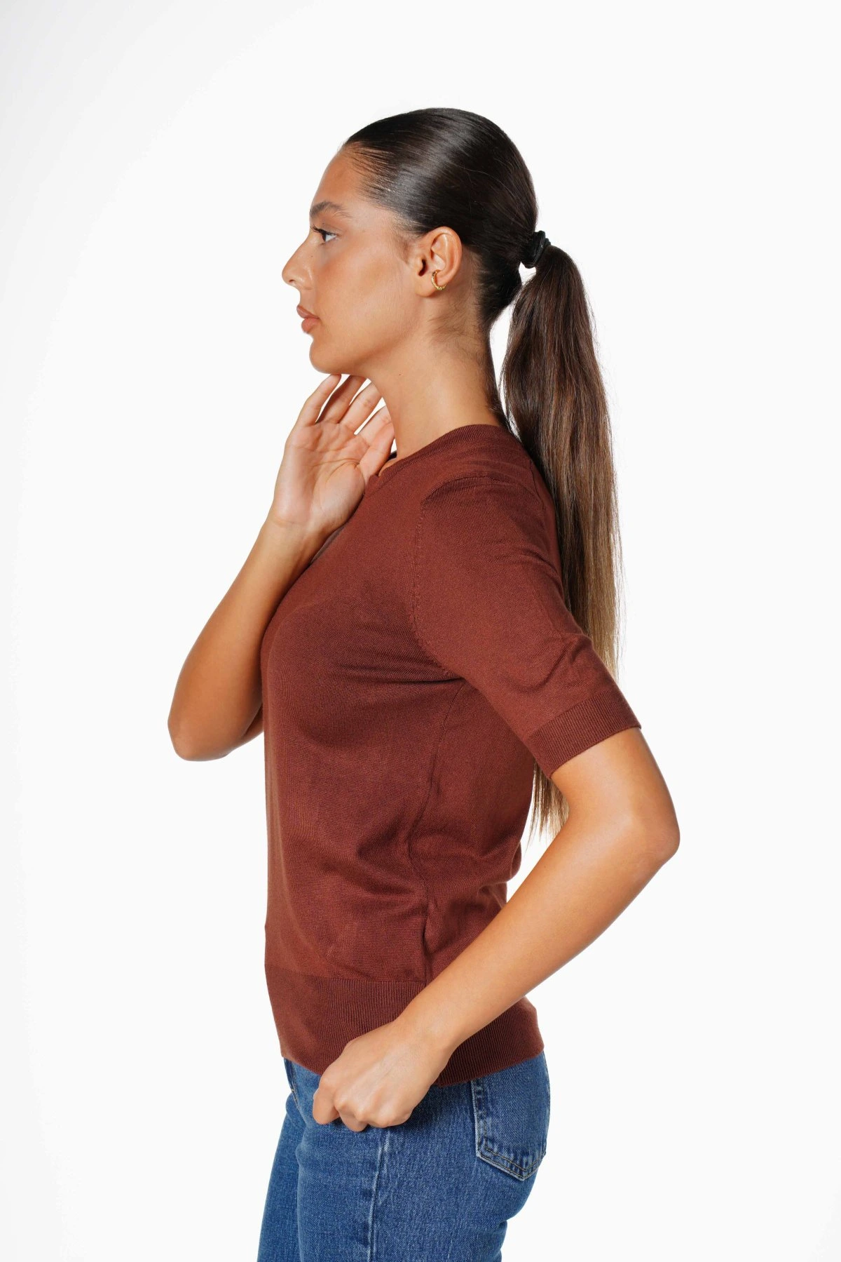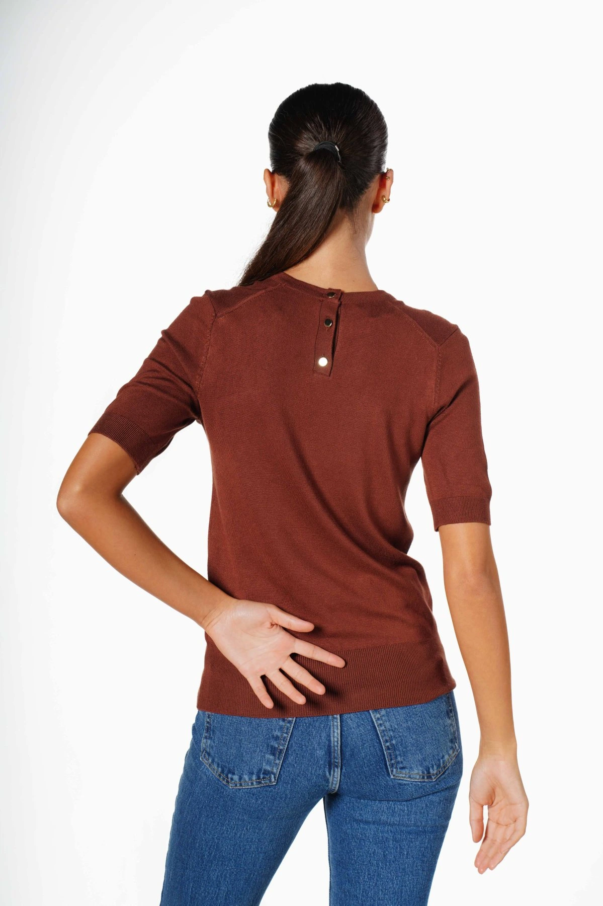 BİSİKLET YAKA ENSE DÜĞME KISA KOL KAZAK – KAHVE