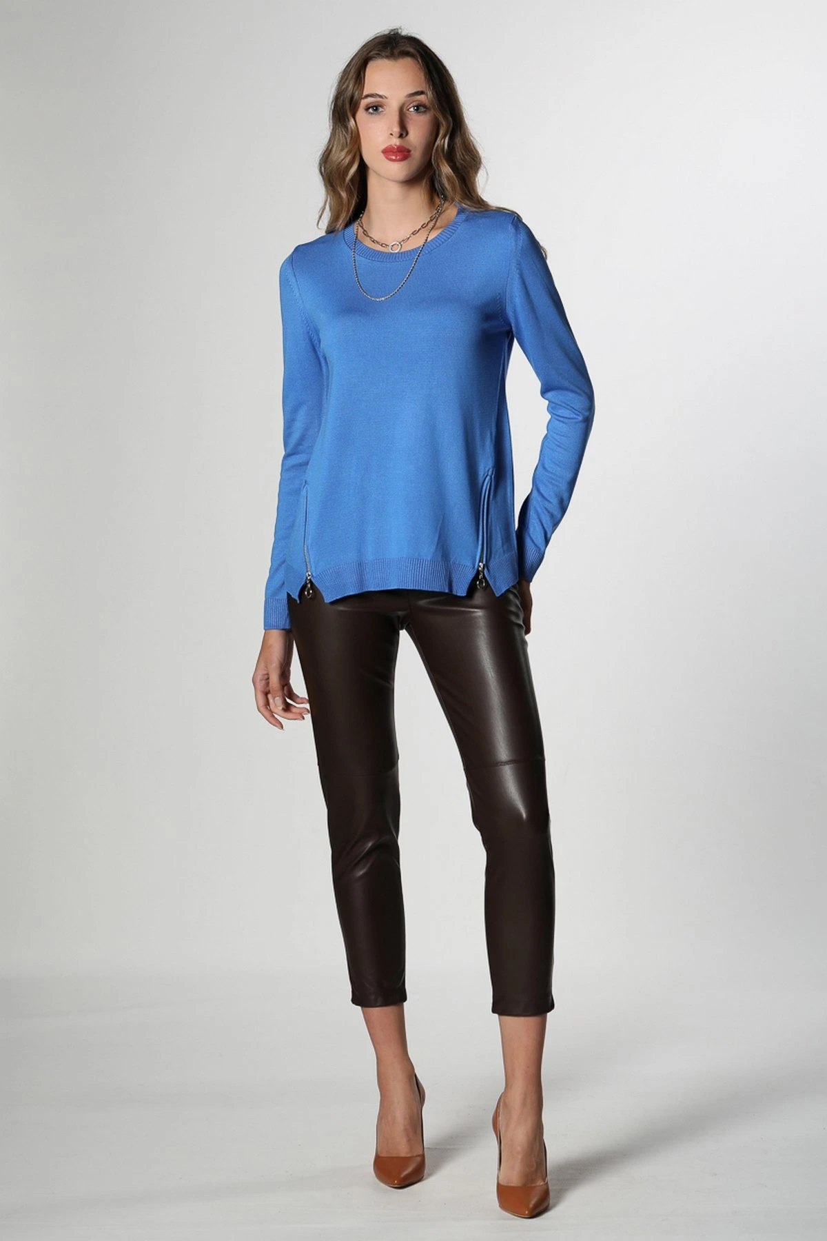 BİSİKLET YAKA ETEĞİ FERMUARLI TRİKO – İNDİGO