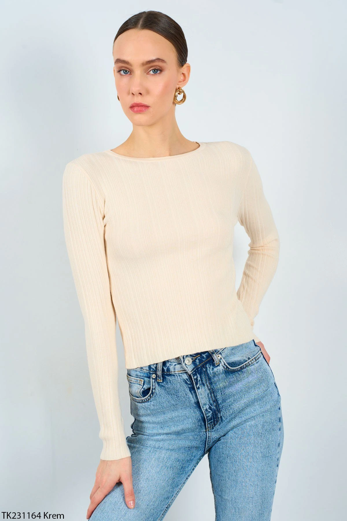 BİSİKLET YAKA FİTİLLİ VİSKON TRİKO – KREM