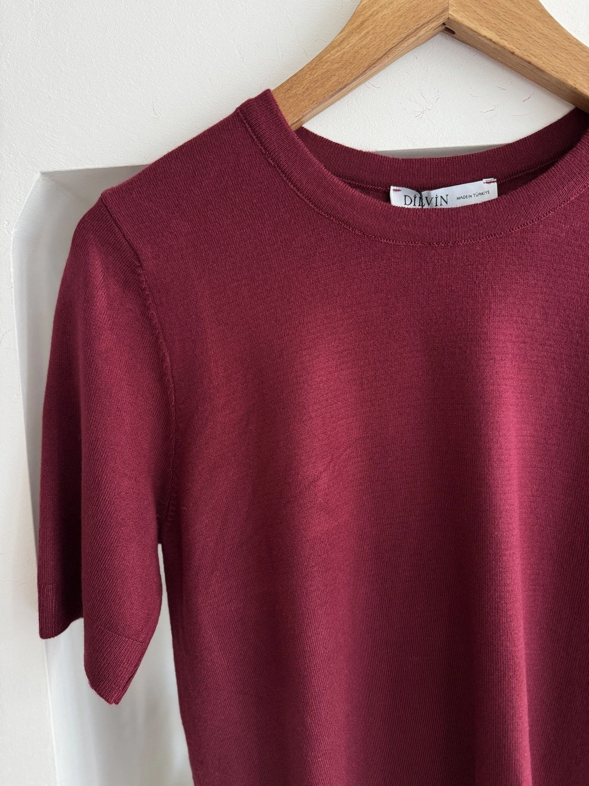 BİSİKLET YAKA KISA KOL VİSKON LİKRA TRİKO – BORDO