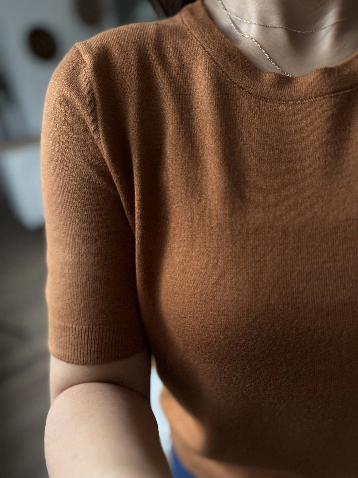 BİSİKLET YAKA KISA KOL VİSKON LİKRA TRİKO – KARAMEL