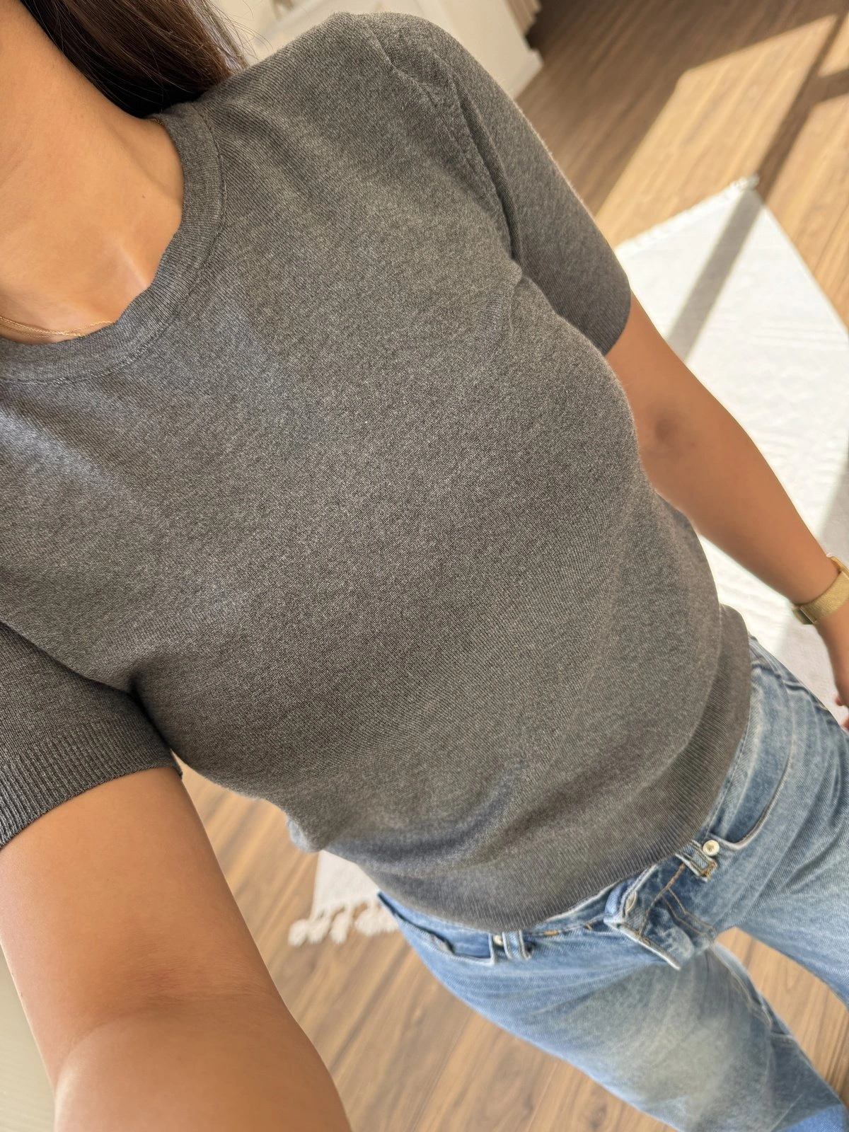 BİSİKLET YAKA KISA KOL VİSKON LİKRA TRİKO – KOYU FÜME MELANJ