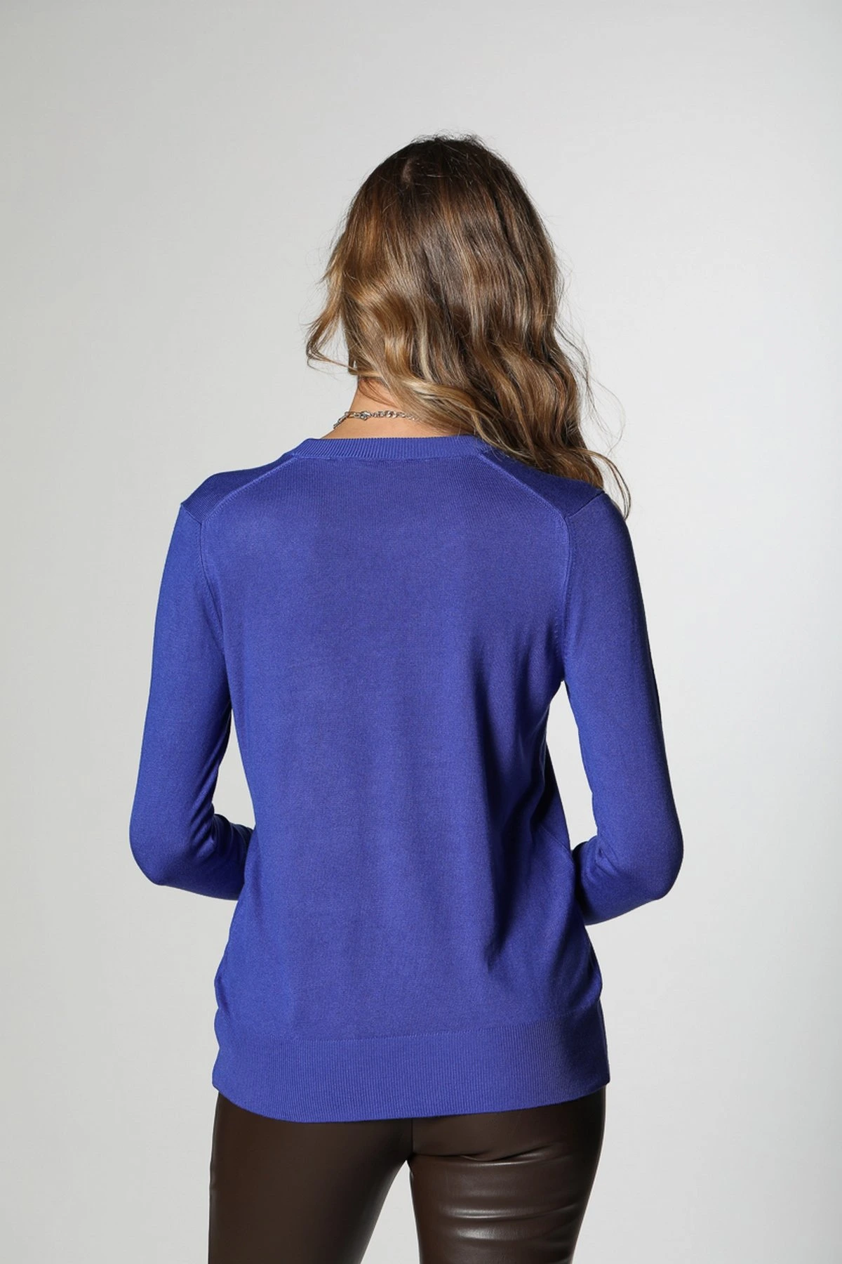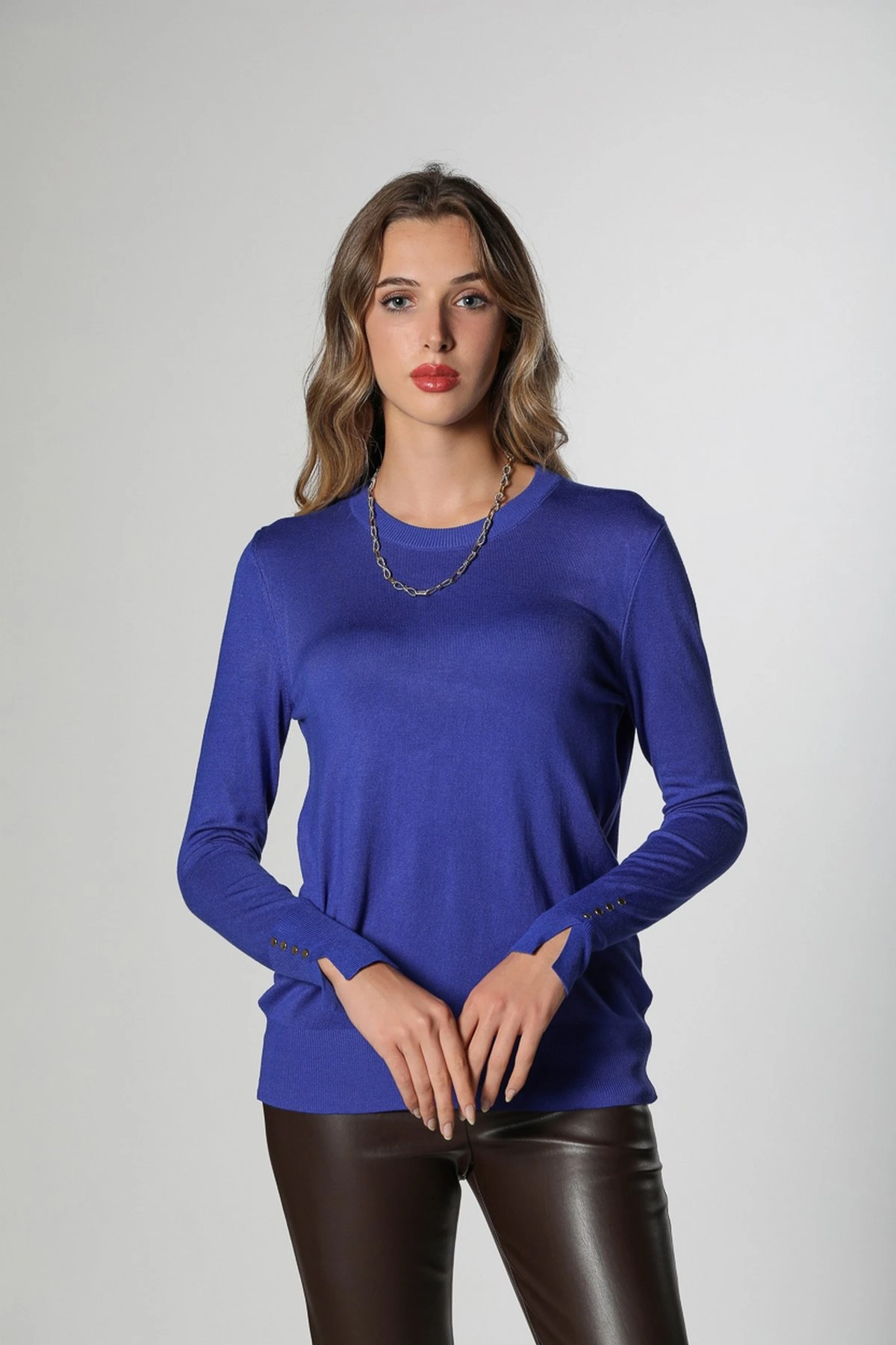 BİSİKLET YAKA MANŞET ÇITÇITLI TRİKO – SAKS