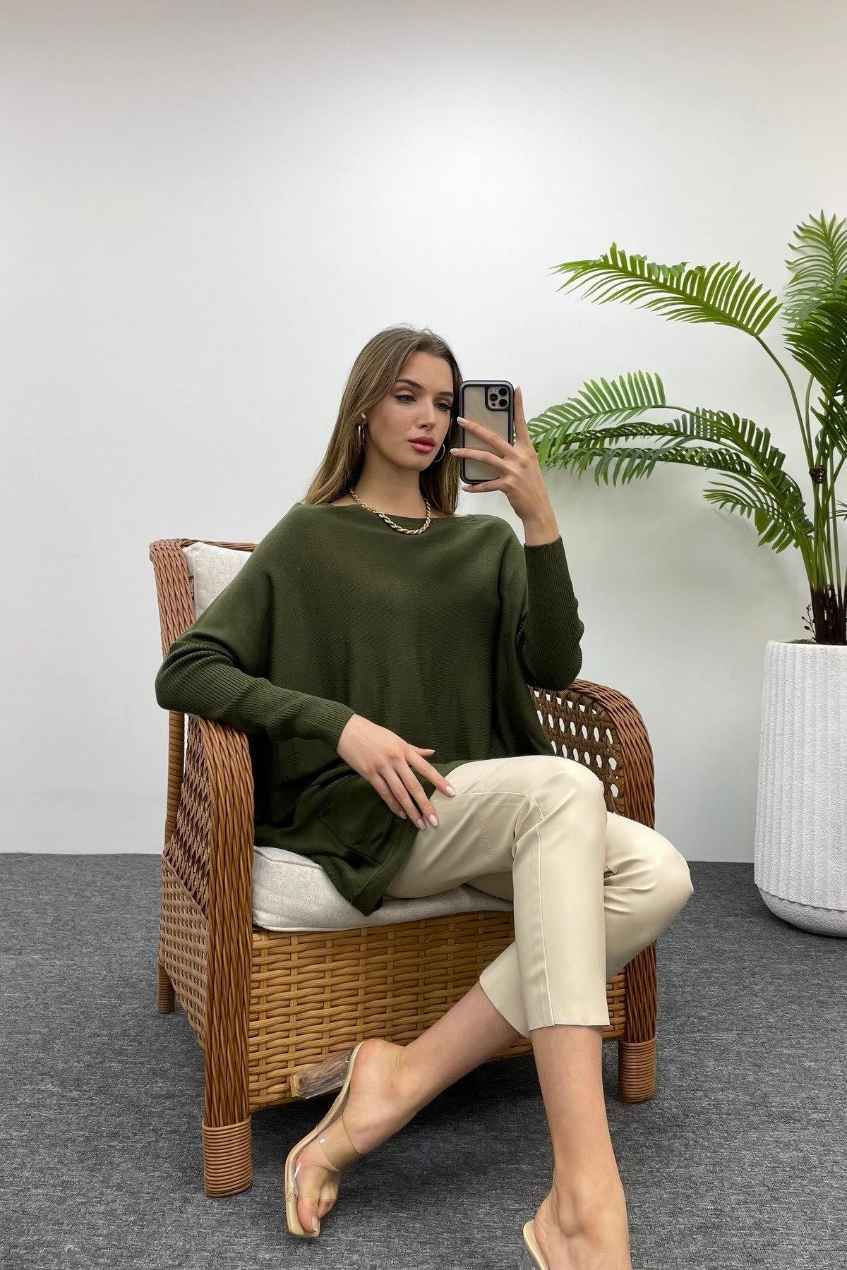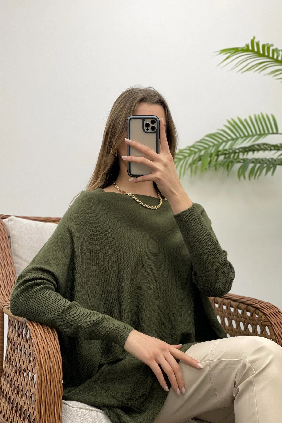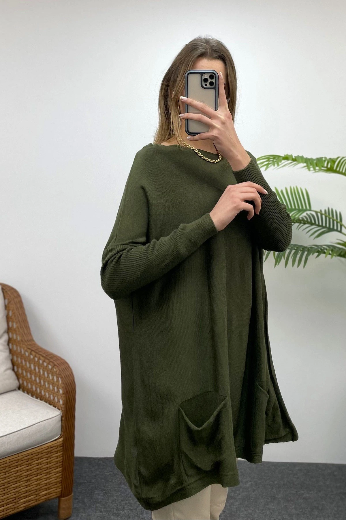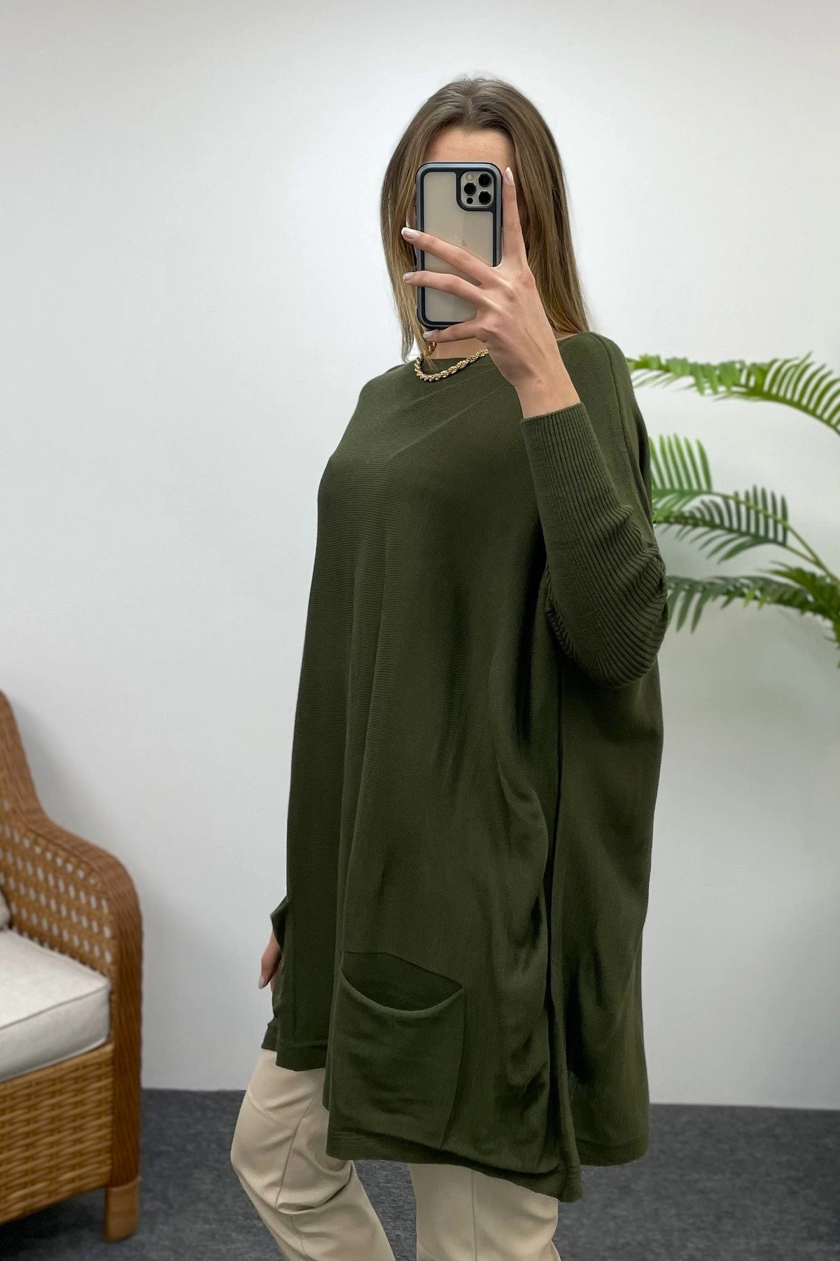 CEPLİ GENİŞ KALIP TRİKO – HAKİ