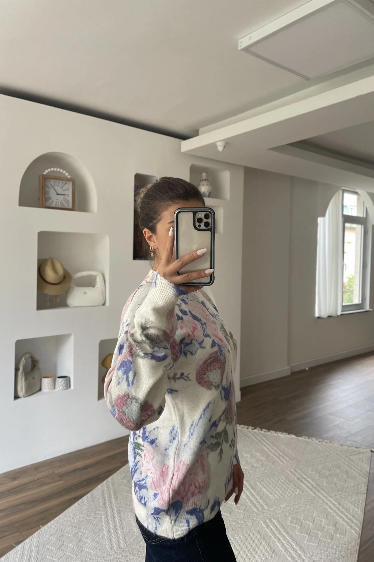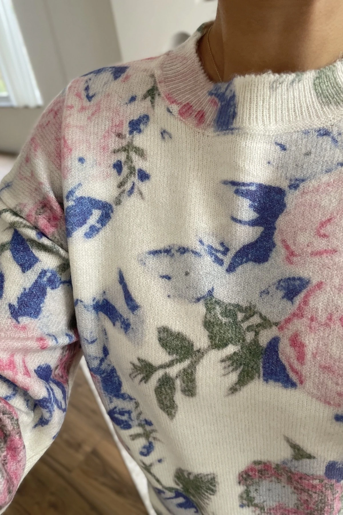 ÇİÇEK DESEN VİSKON YÜN KARIŞIM KAZAK – ÇİÇEK DESEN