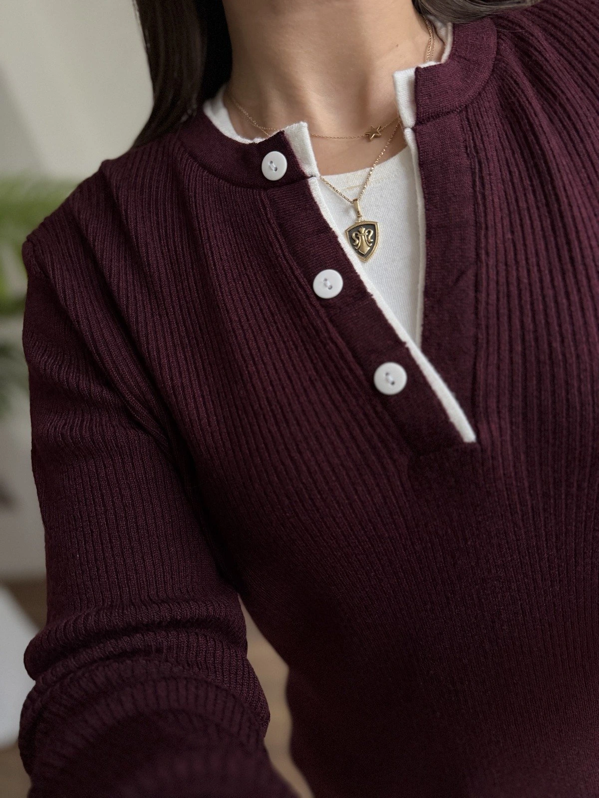 ÇİFT KAT YAKA DÜĞMELİ VİSKON TRİKO – BORDO