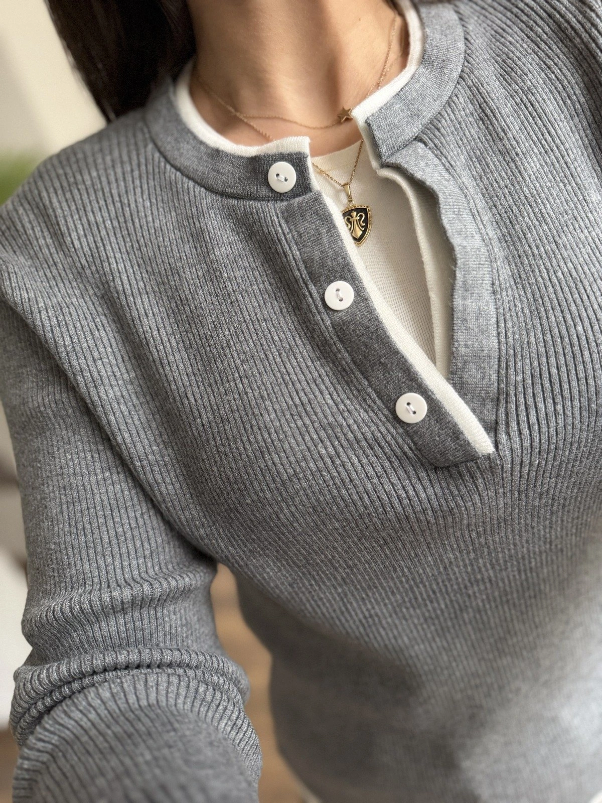 ÇİFT YAKA DÜĞMELİ VİSKON TRİKO – GRİ BEYAZ