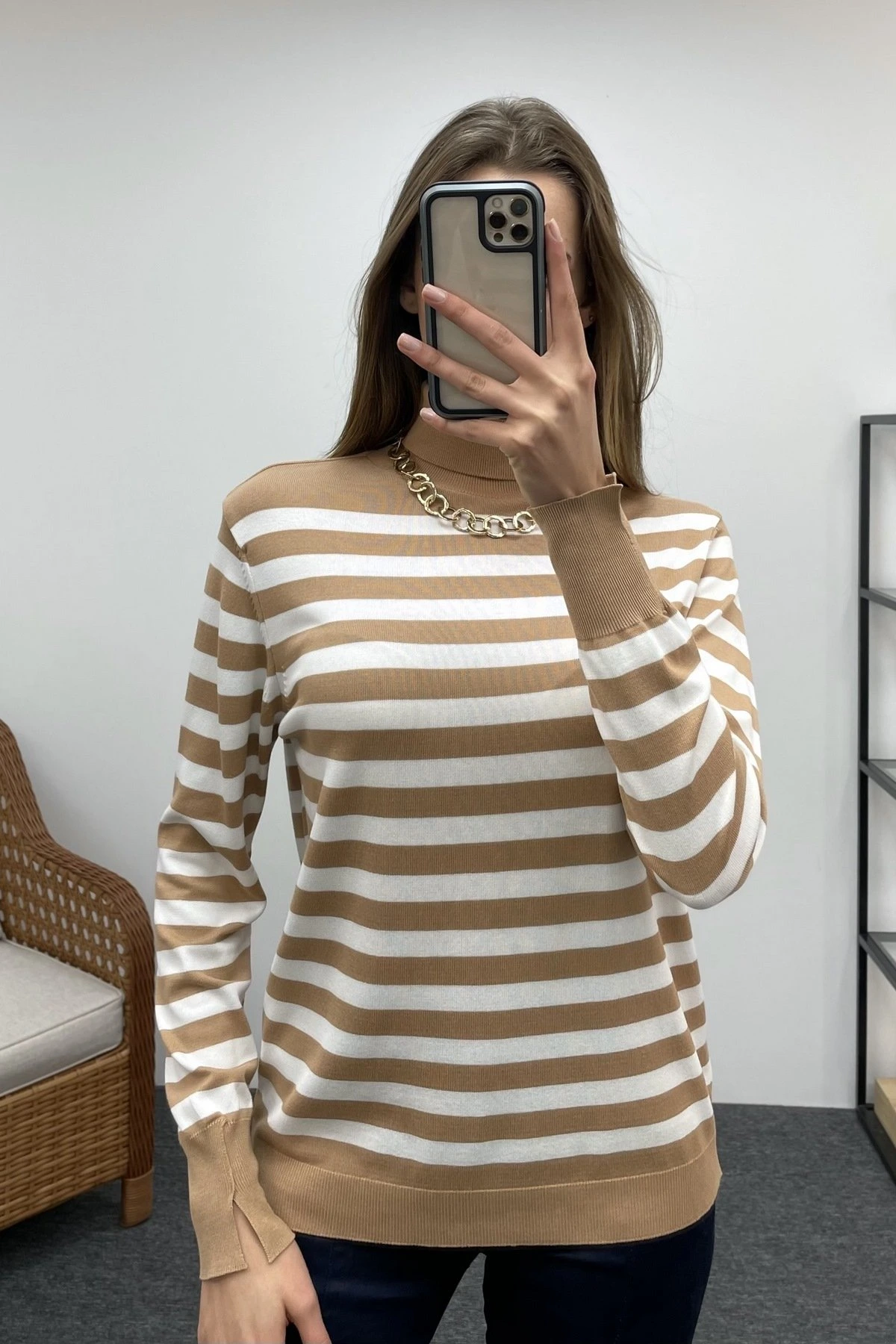 ÇİZGİLİ BALIKÇI TRİKO – CAMEL EKRU