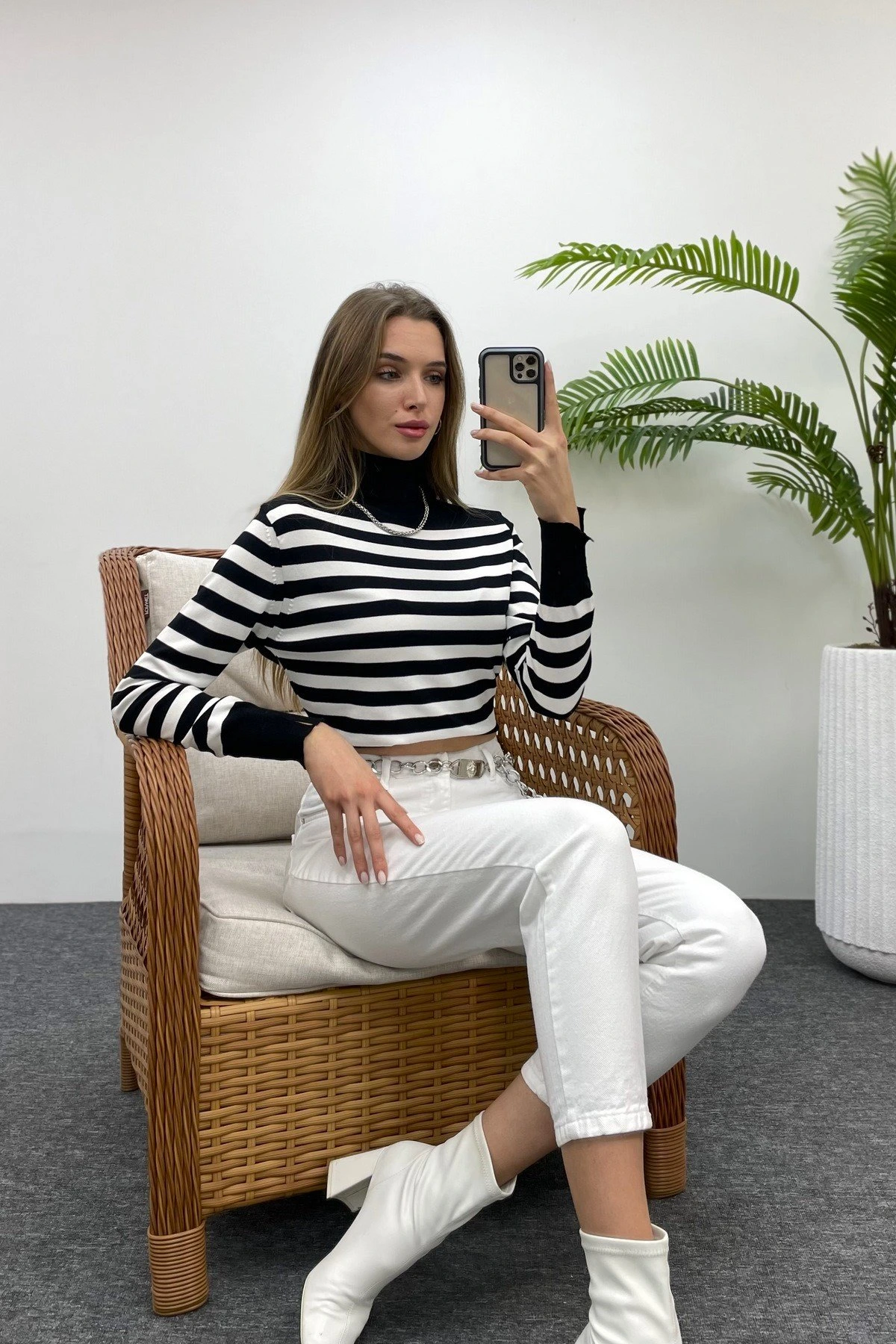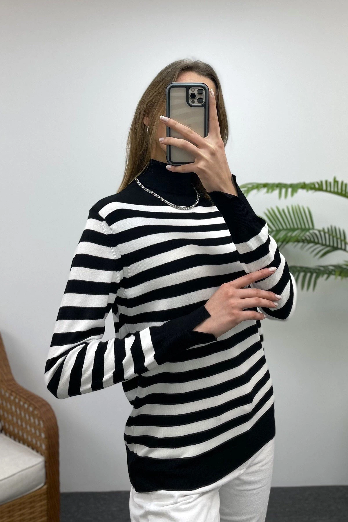 ÇİZGİLİ BALIKÇI TRİKO – SİYAH EKRU