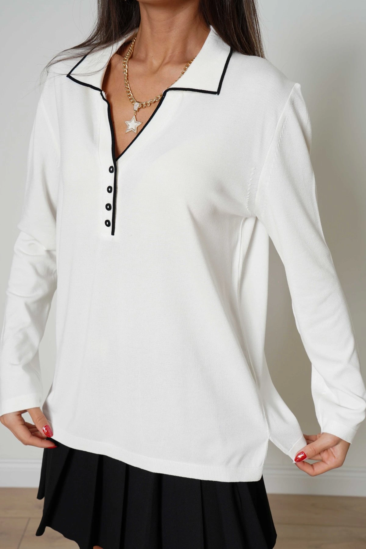 V YAKA KOL AJUR DETAY VİSKON TRİKO - EKRU