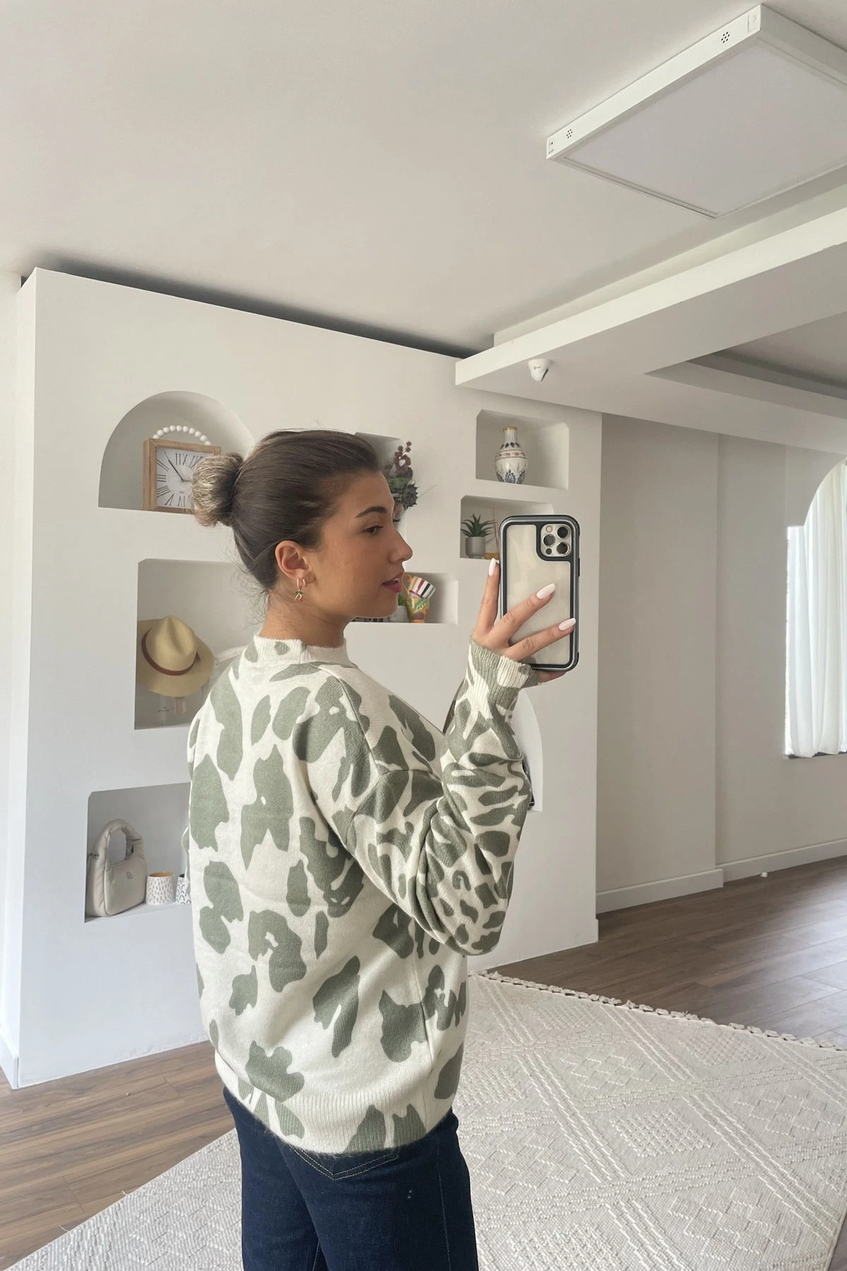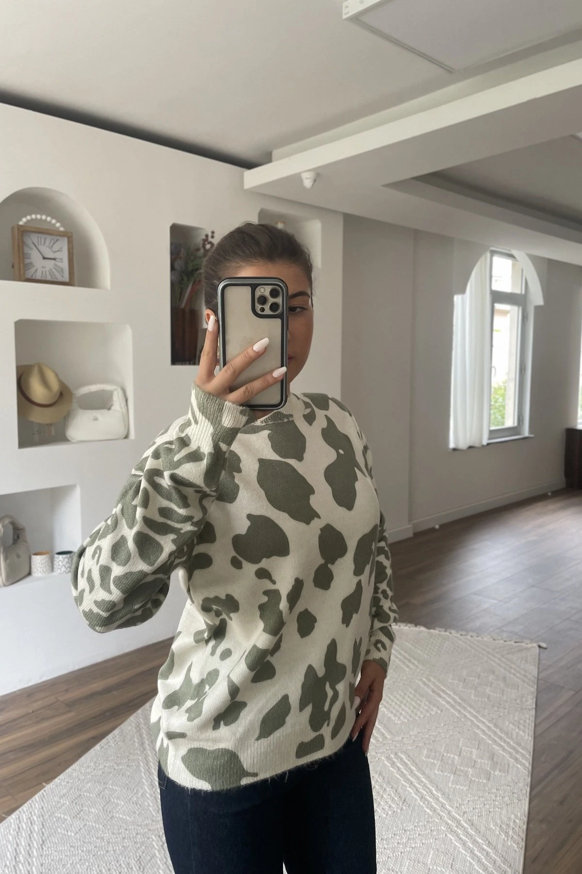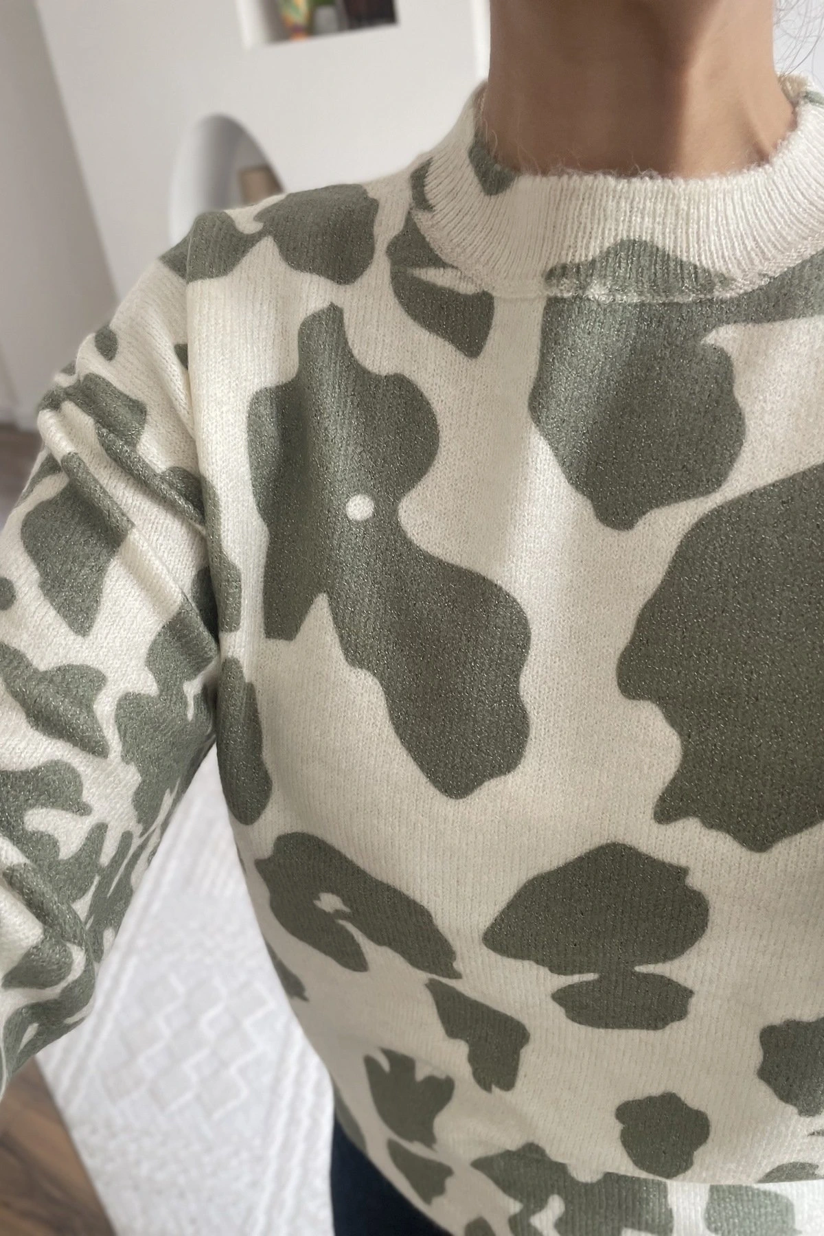DESENLİ VİSKON YÜN KARIŞIM BİSİKLET YAKA KAZAK – HAKİ