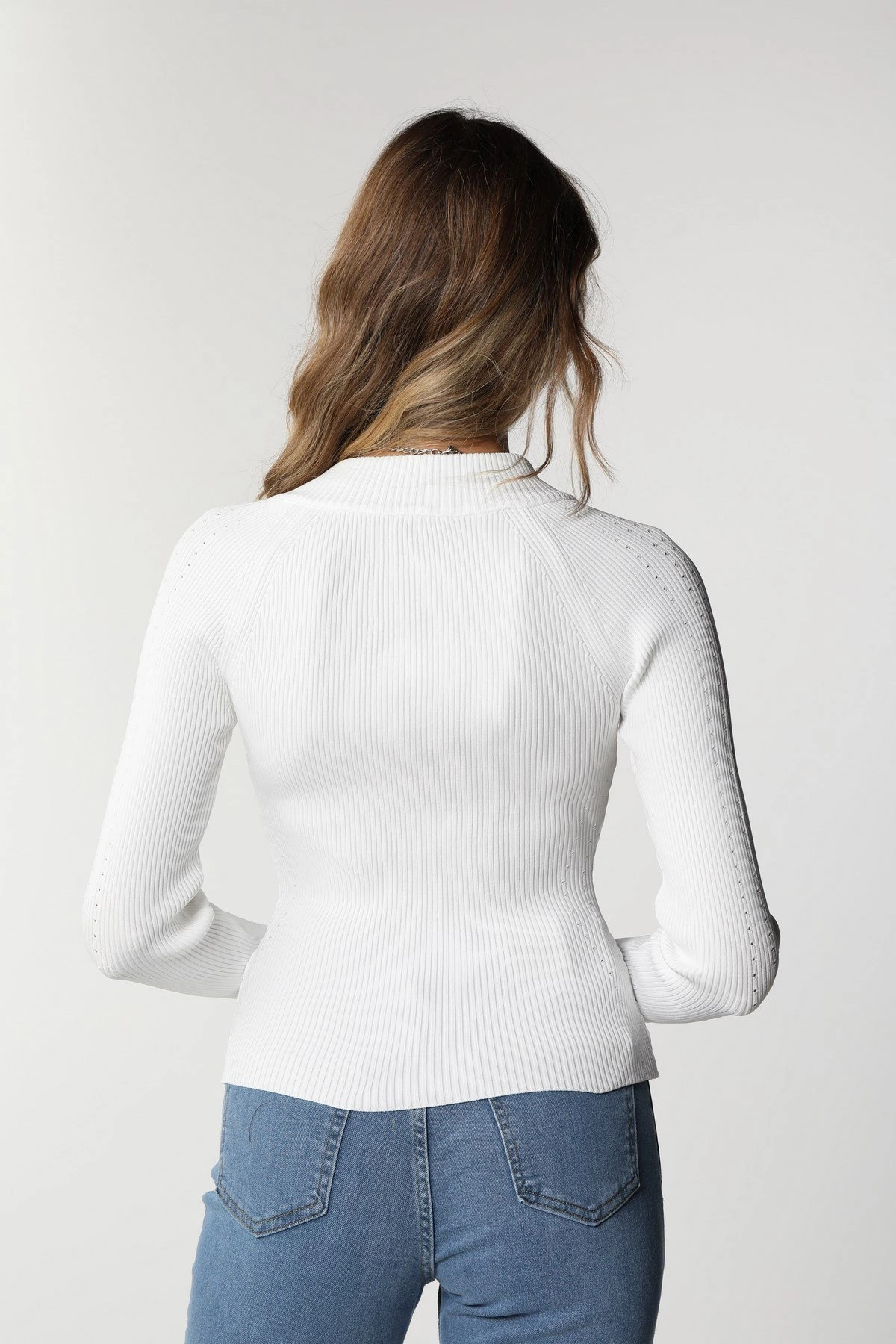 DİK YAKA FERMUARLI FİTİLLİ TRİKO – EKRU