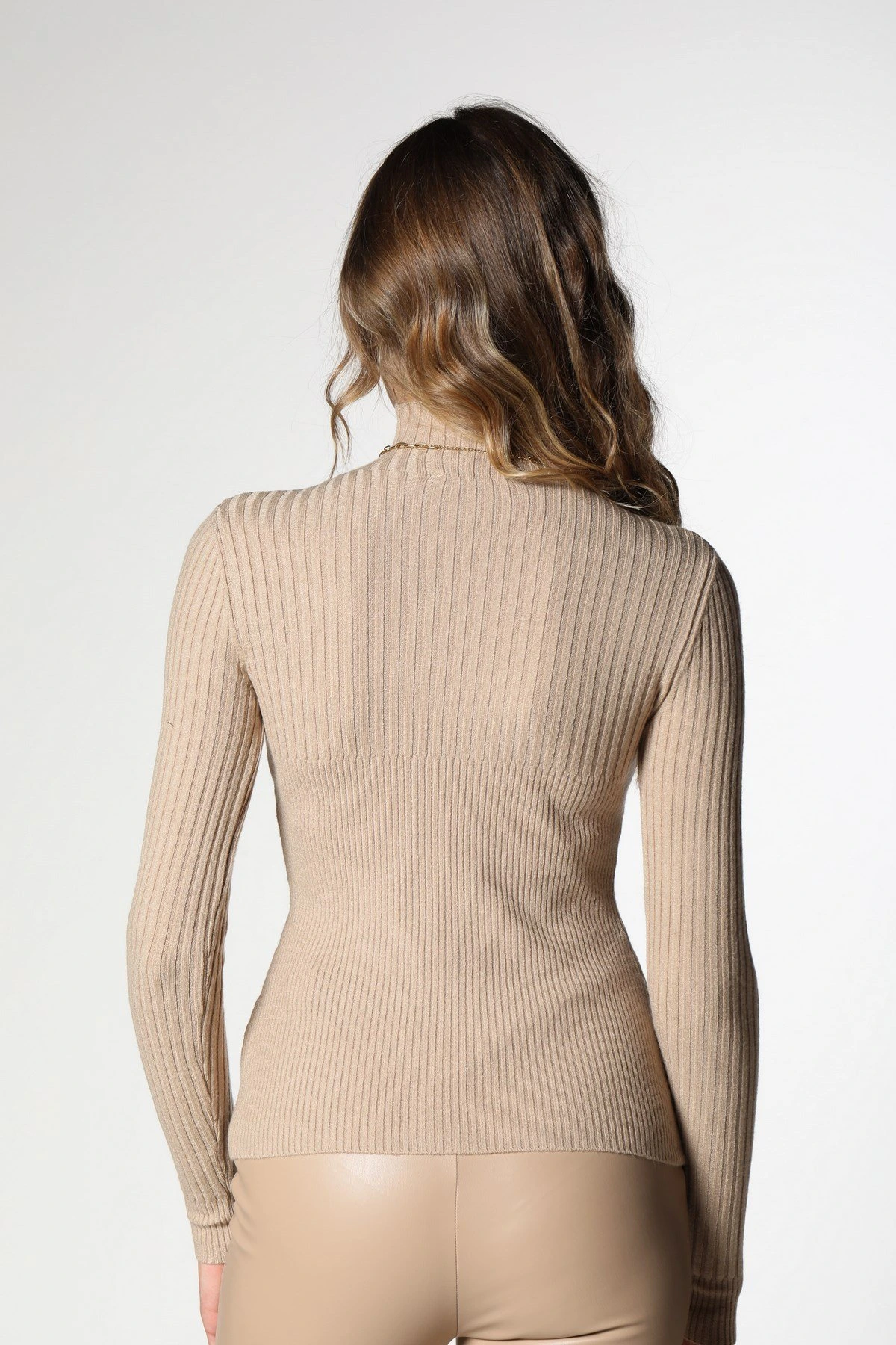DİK YAKA FİTİLLİ TRİKO – BEJ