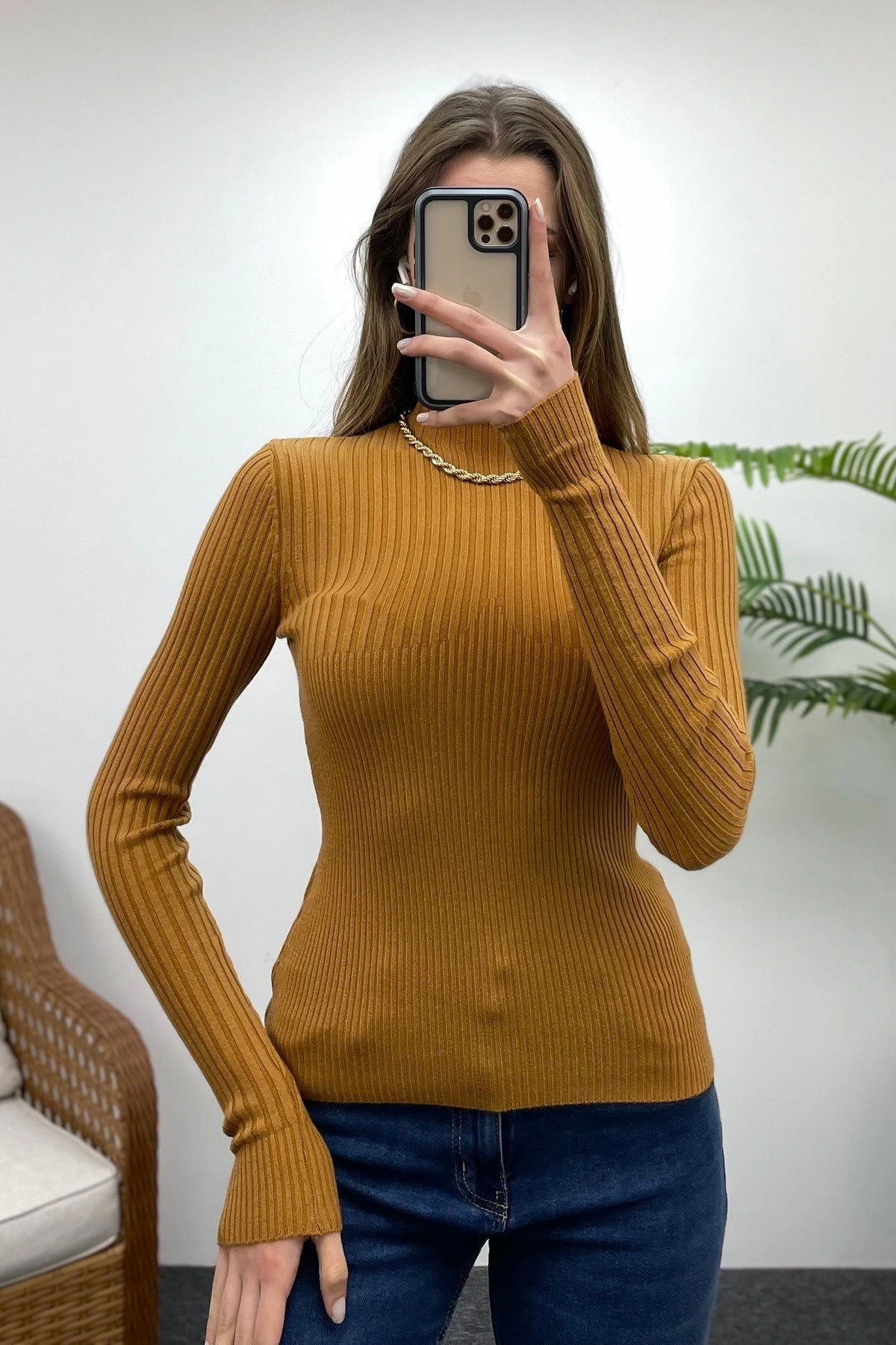 DİK YAKA FİTİLLİ TRİKO – SÜTLÜ KAHVE