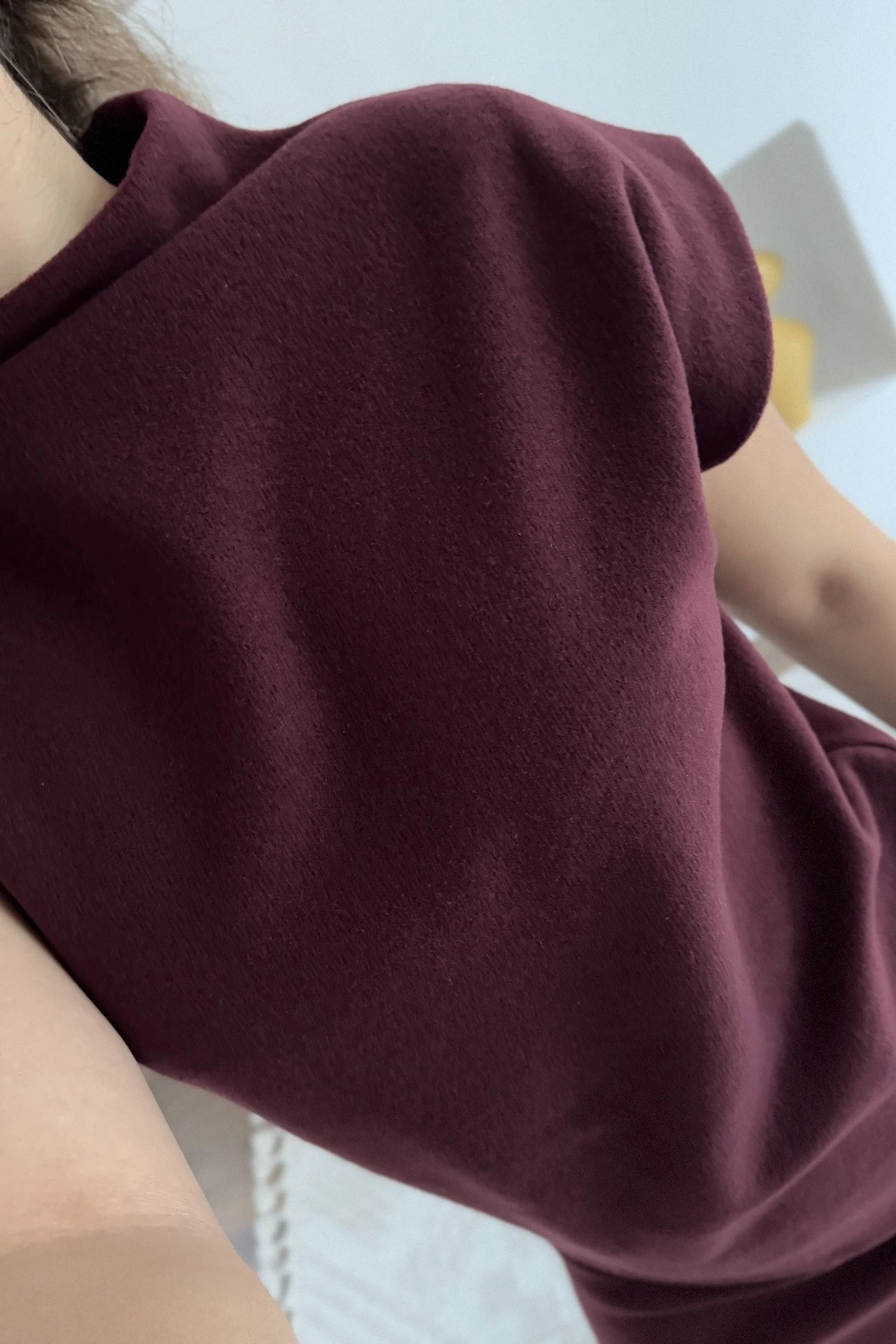 DİK YAKA SELANİK ÖRGÜ PAMUK SÜVETER – BORDO
