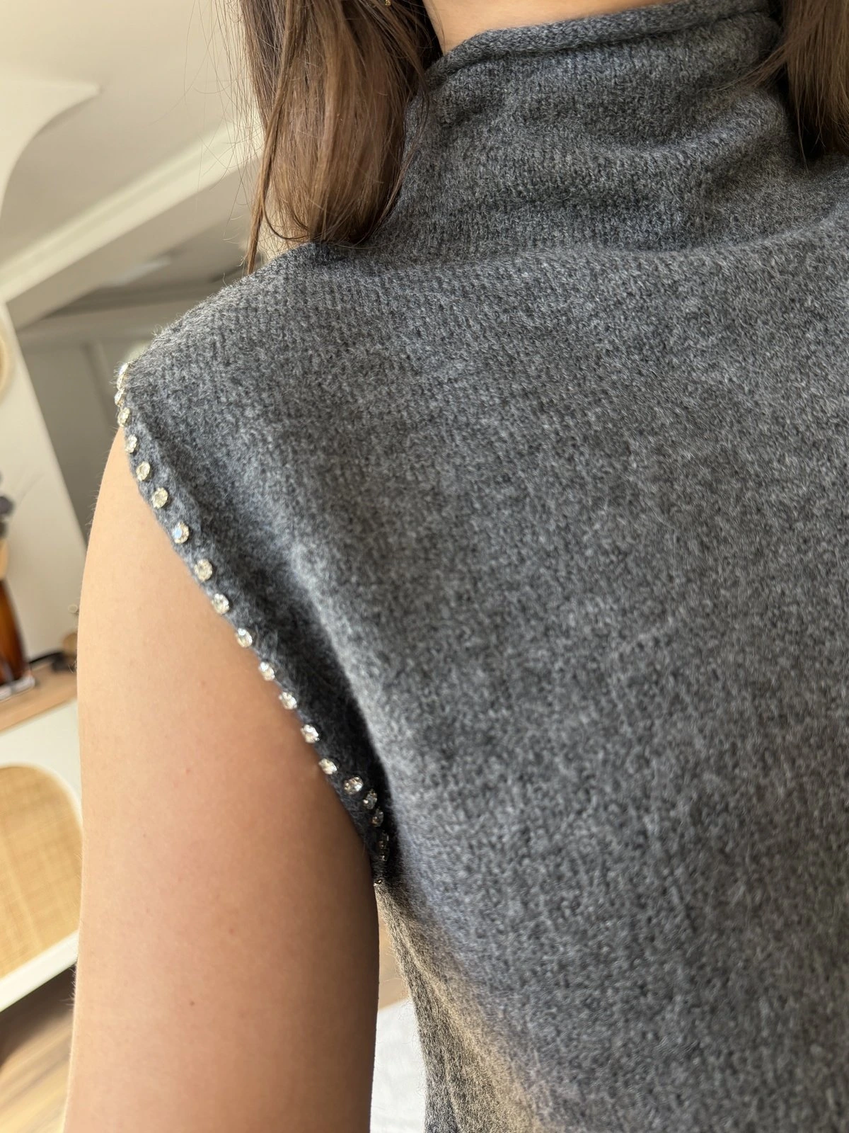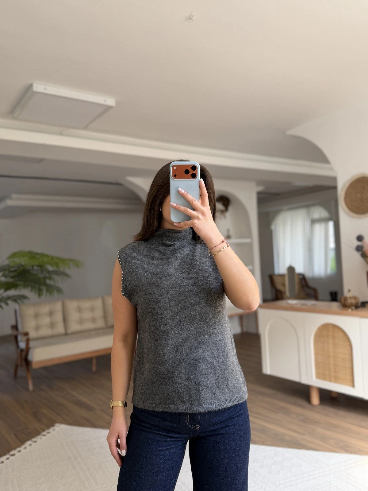 DİK YAKA SIFIR KOL TAŞ ZIMBA TRİKO – ANTRASİT