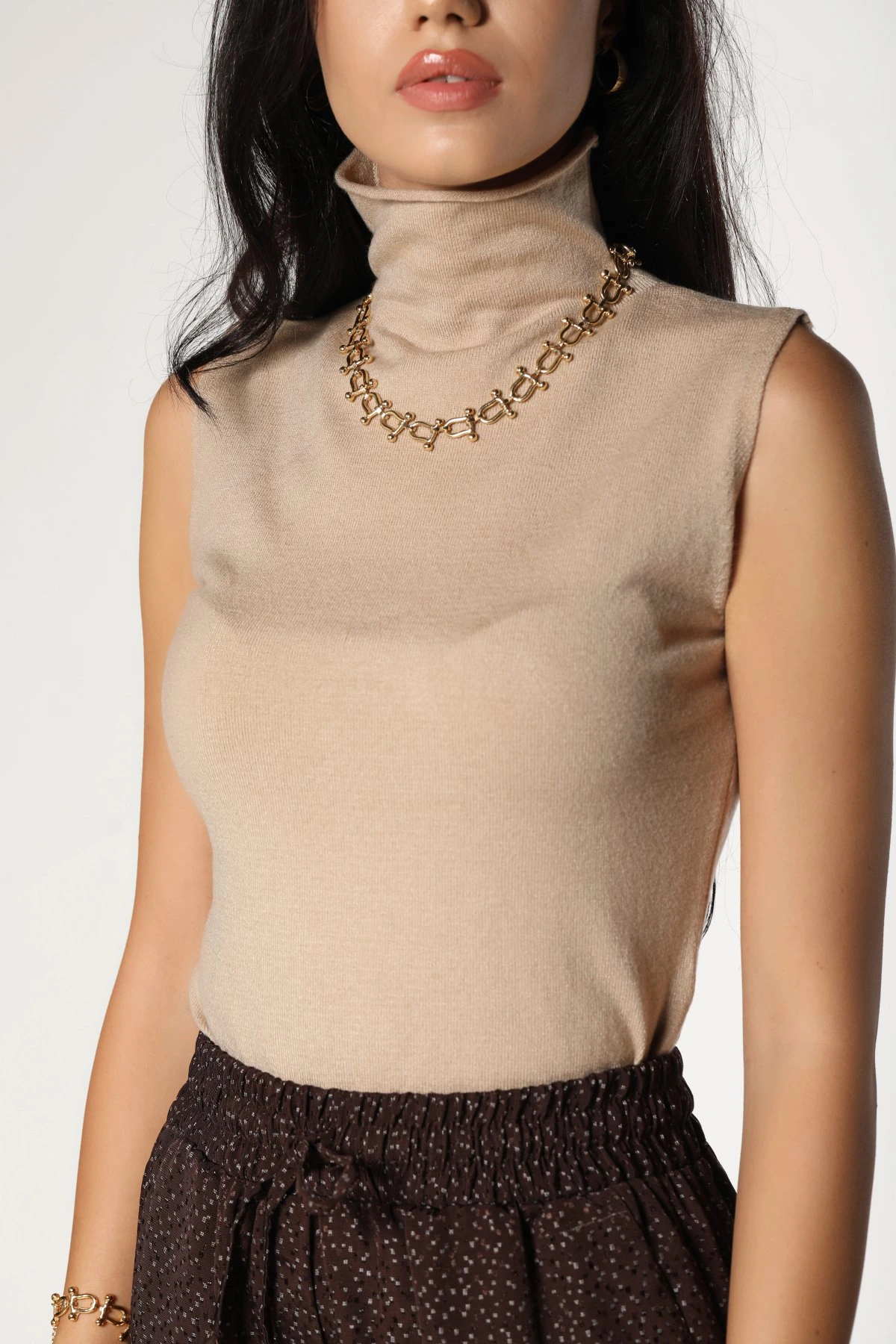 DİK YAKA SIFIR KOL TRİKO – BEJ