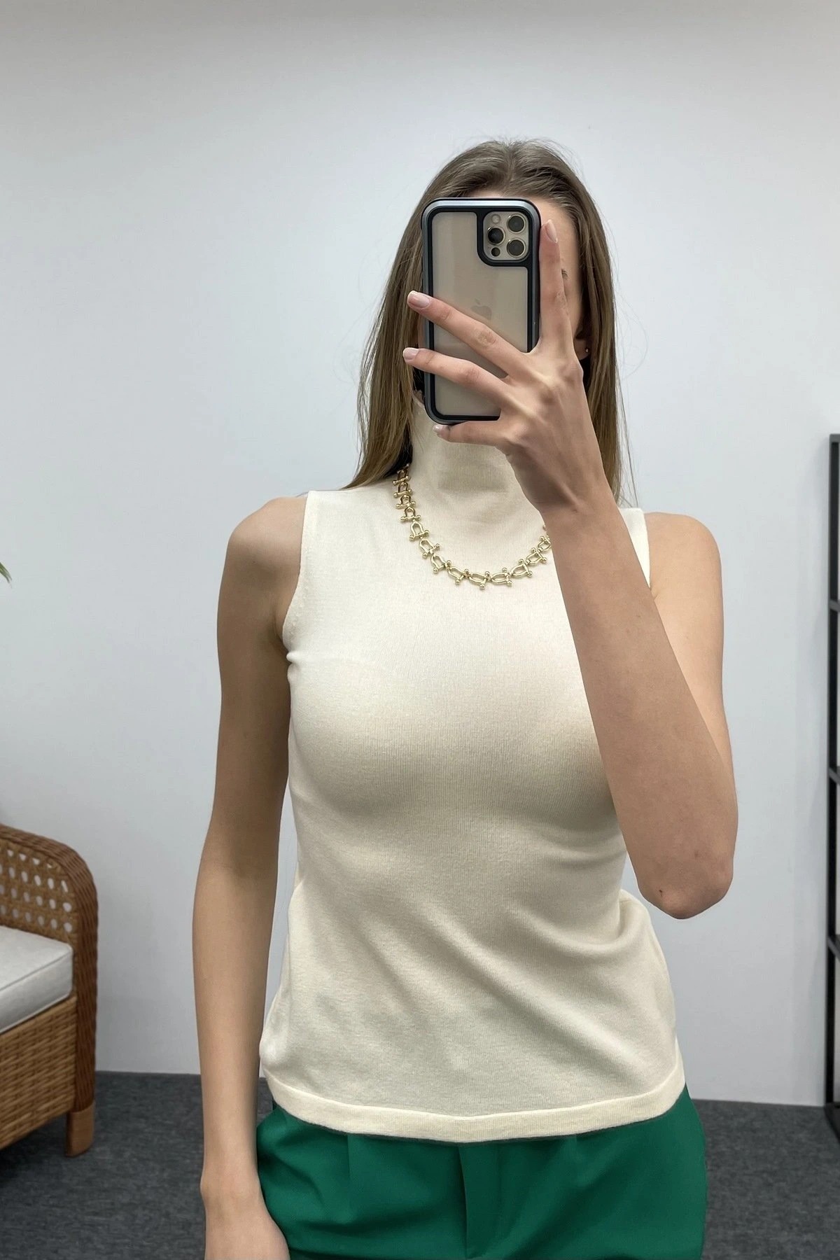 DİK YAKA SIFIR KOL TRİKO – KREM