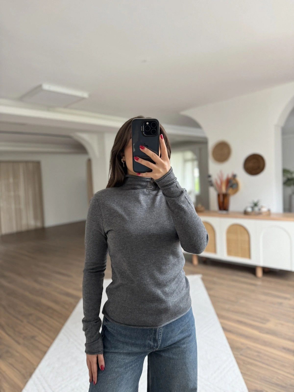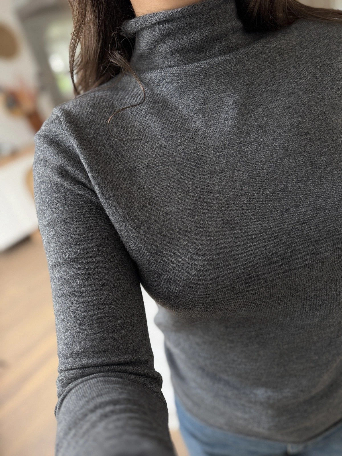 DİK YAKA YUMUŞAK DOKU YÜN KARIŞIM TRİKO BLUZ – FÜME MELANJ