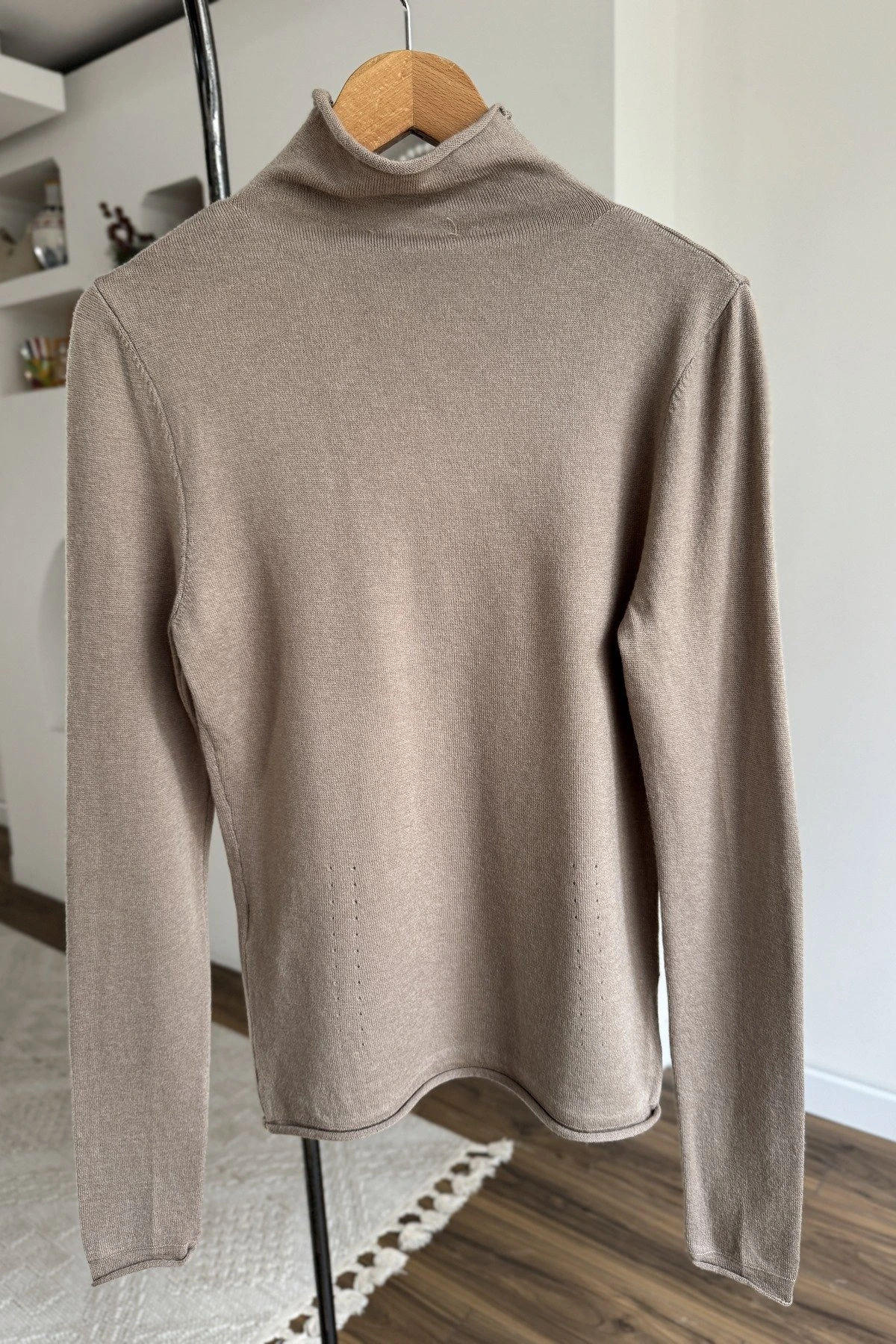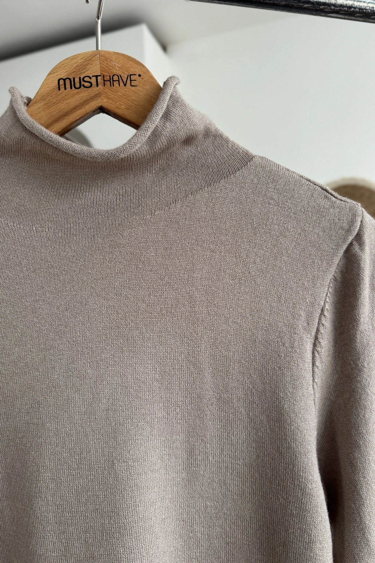 DİK YAKA YUMUŞAK DOKU YÜN KARIŞIM TRİKO BLUZ – KOYU VİZON