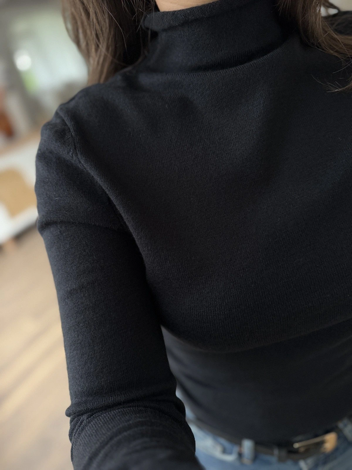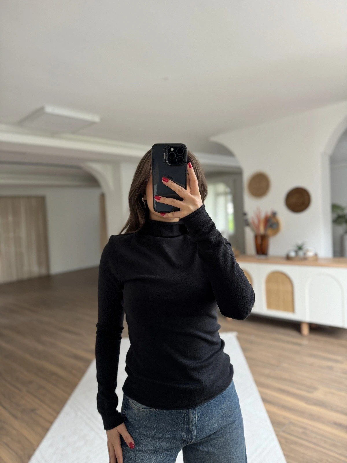 DİK YAKA YUMUŞAK DOKU YÜN KARIŞIM TRİKO BLUZ – SİYAH