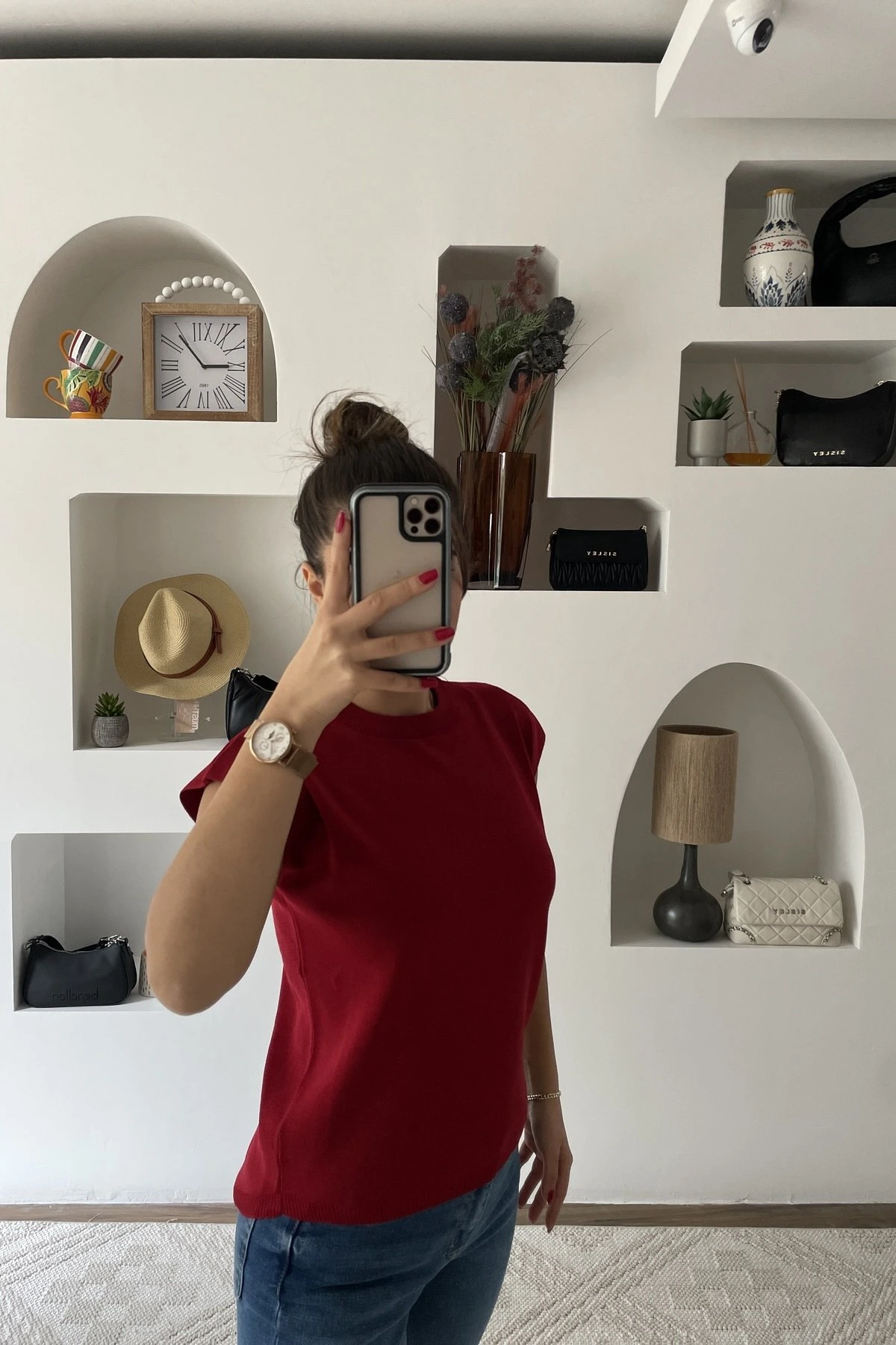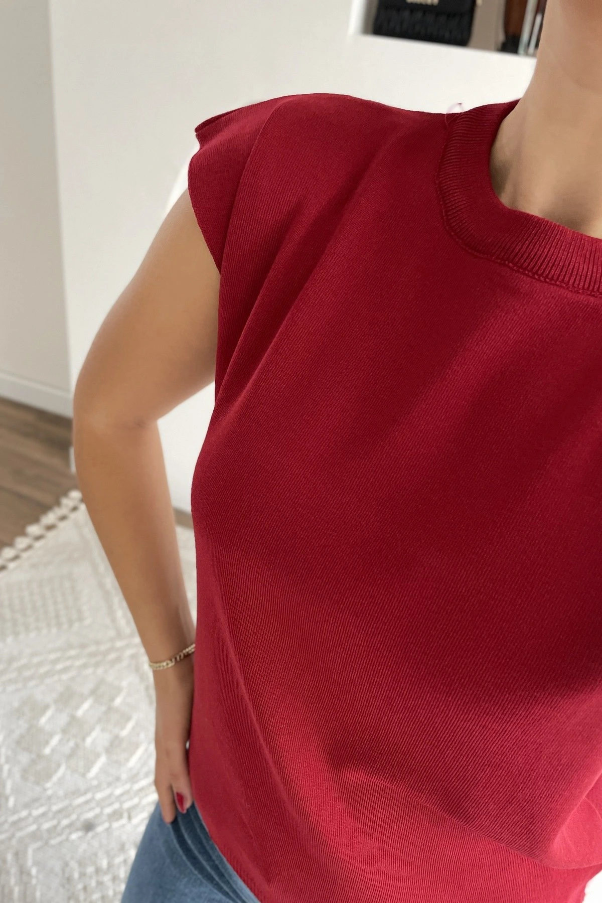 DÜŞÜK OMUZ ARKA UZUN BİSİKLET YAKA TRİKO – VİŞNE