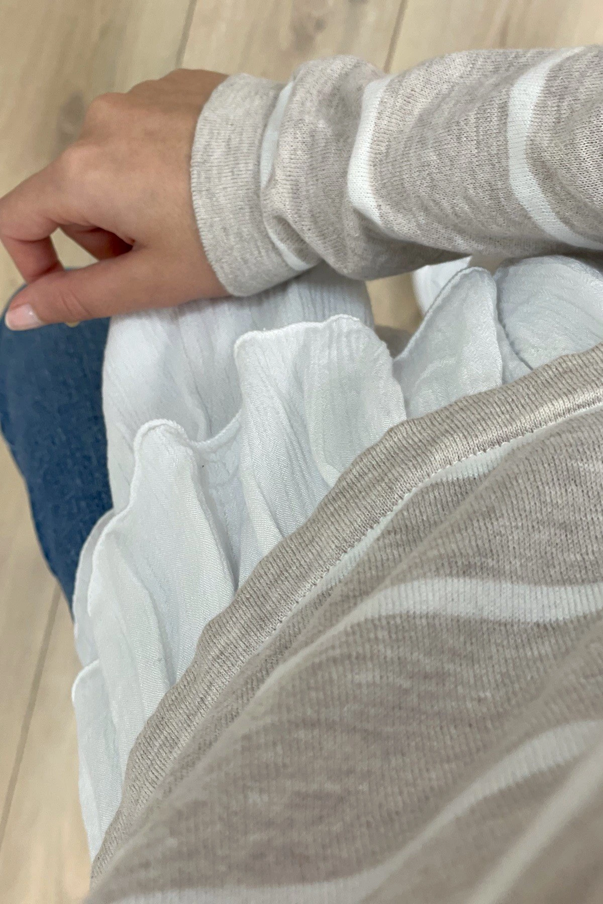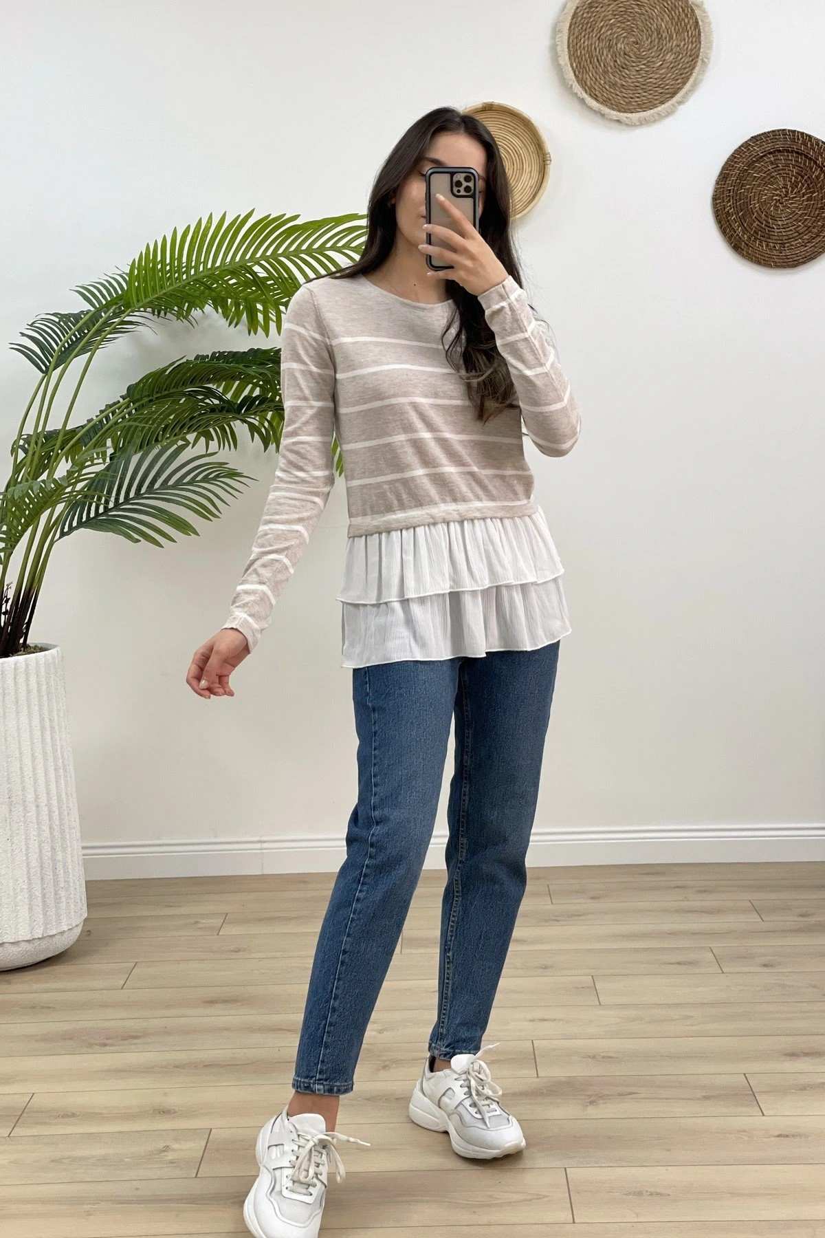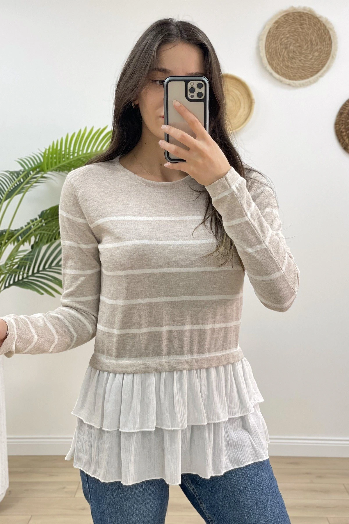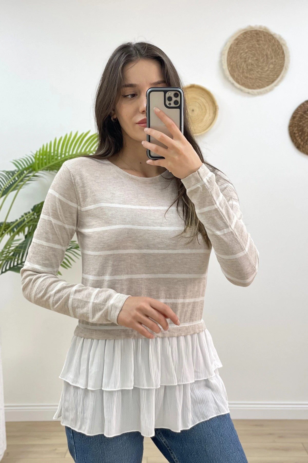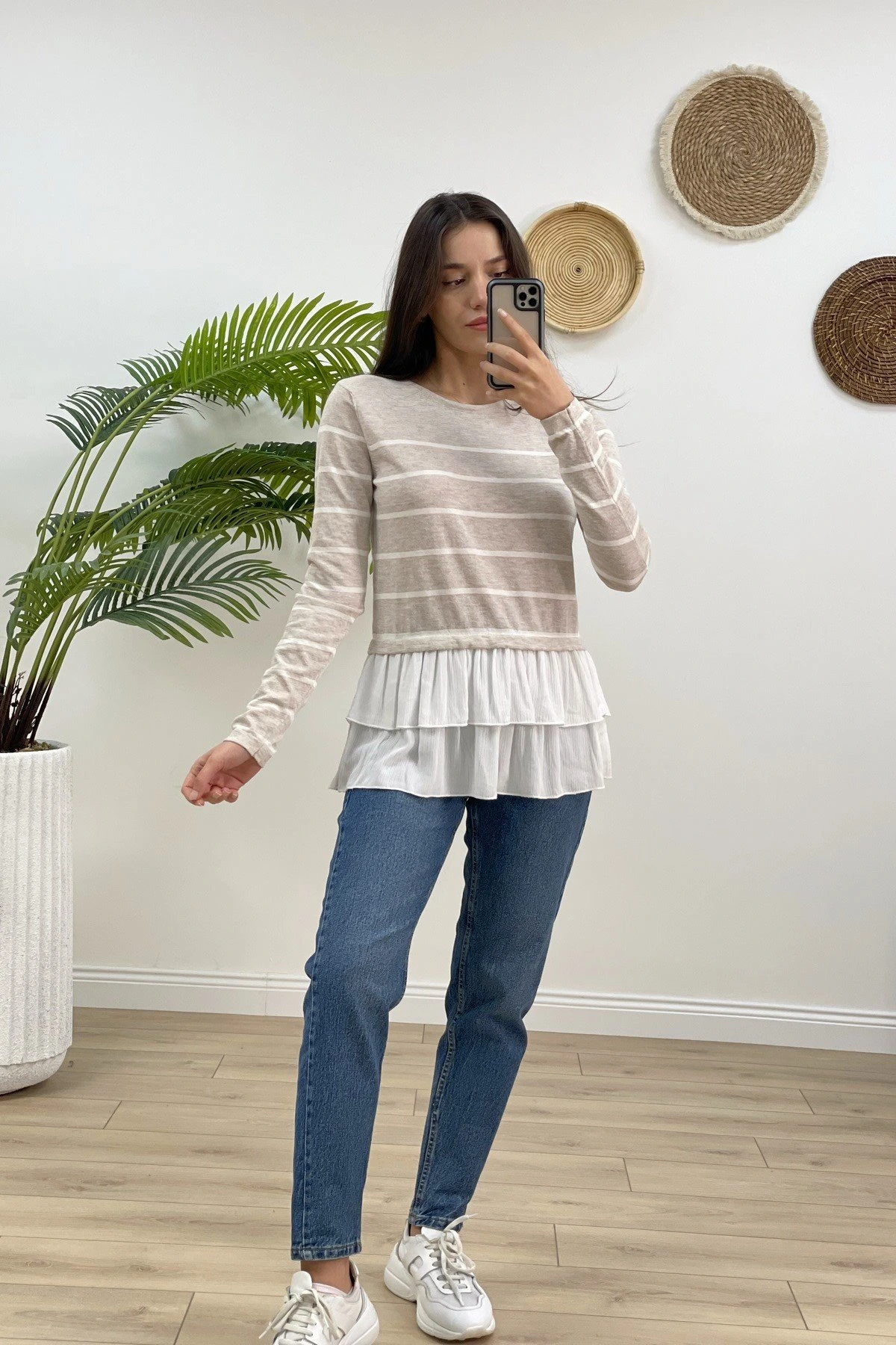 ETEK UCU FIRFIR GARNİLİ ÇİZGİLİ TRİKO – BEJ