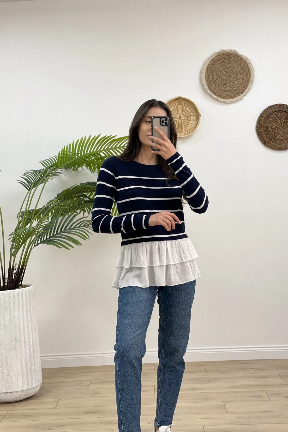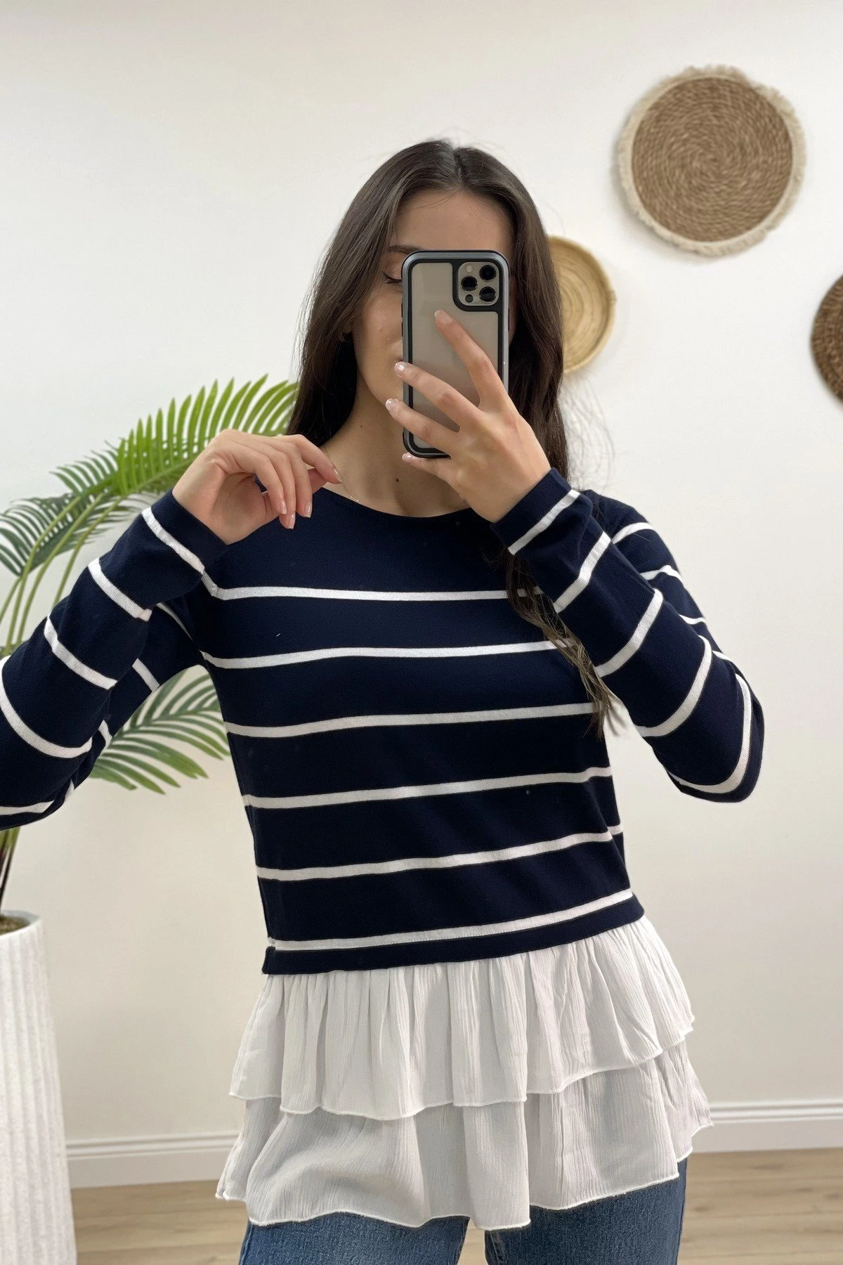 ETEK UCU FIRFIR GARNİLİ ÇİZGİLİ TRİKO – LACİVERT