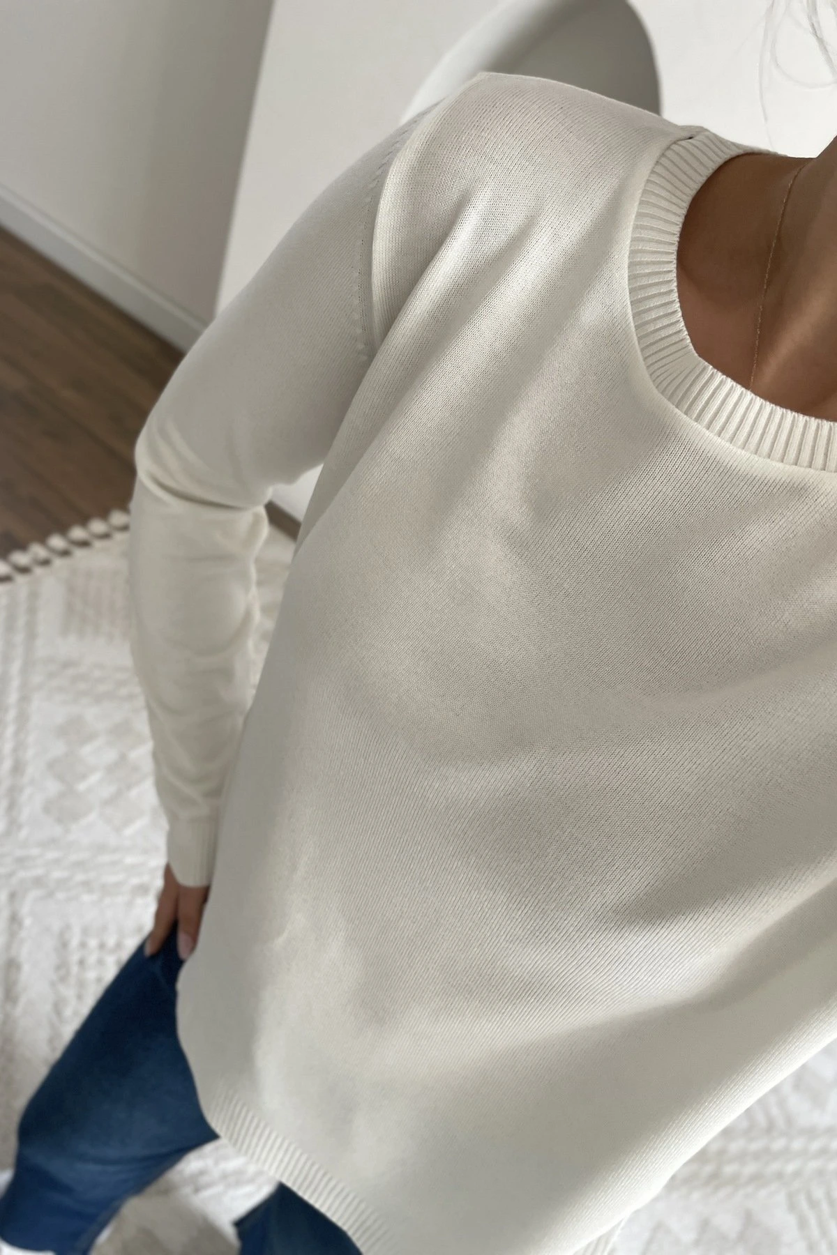 ETEK YAN FERMUARLI BİSİKLET YAKA VİSKON TRİKO – EKRU