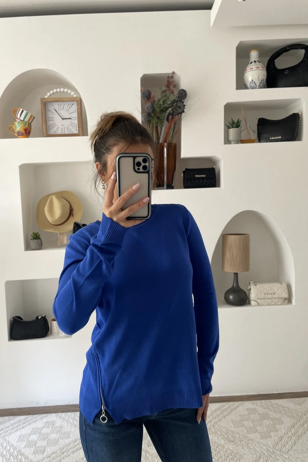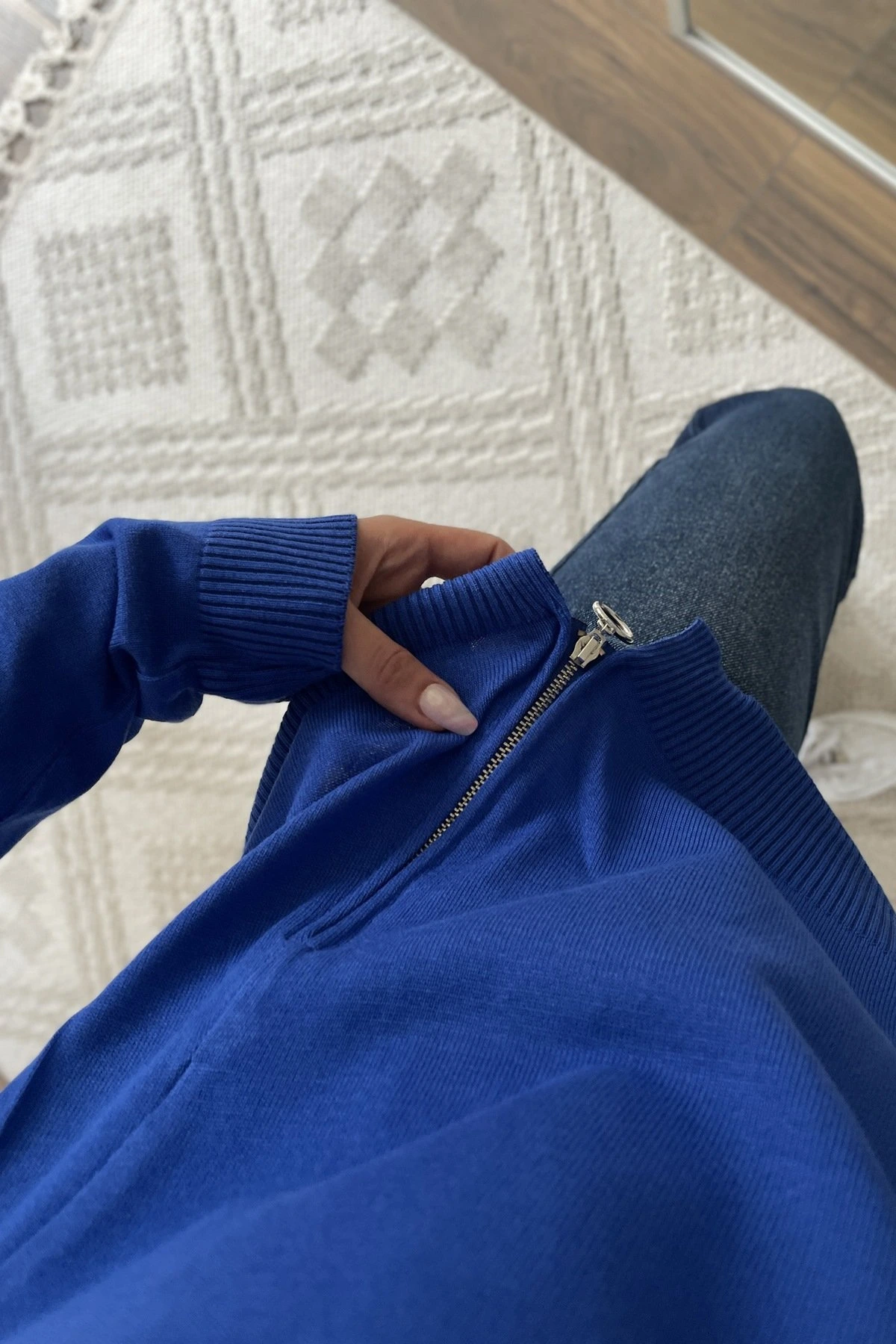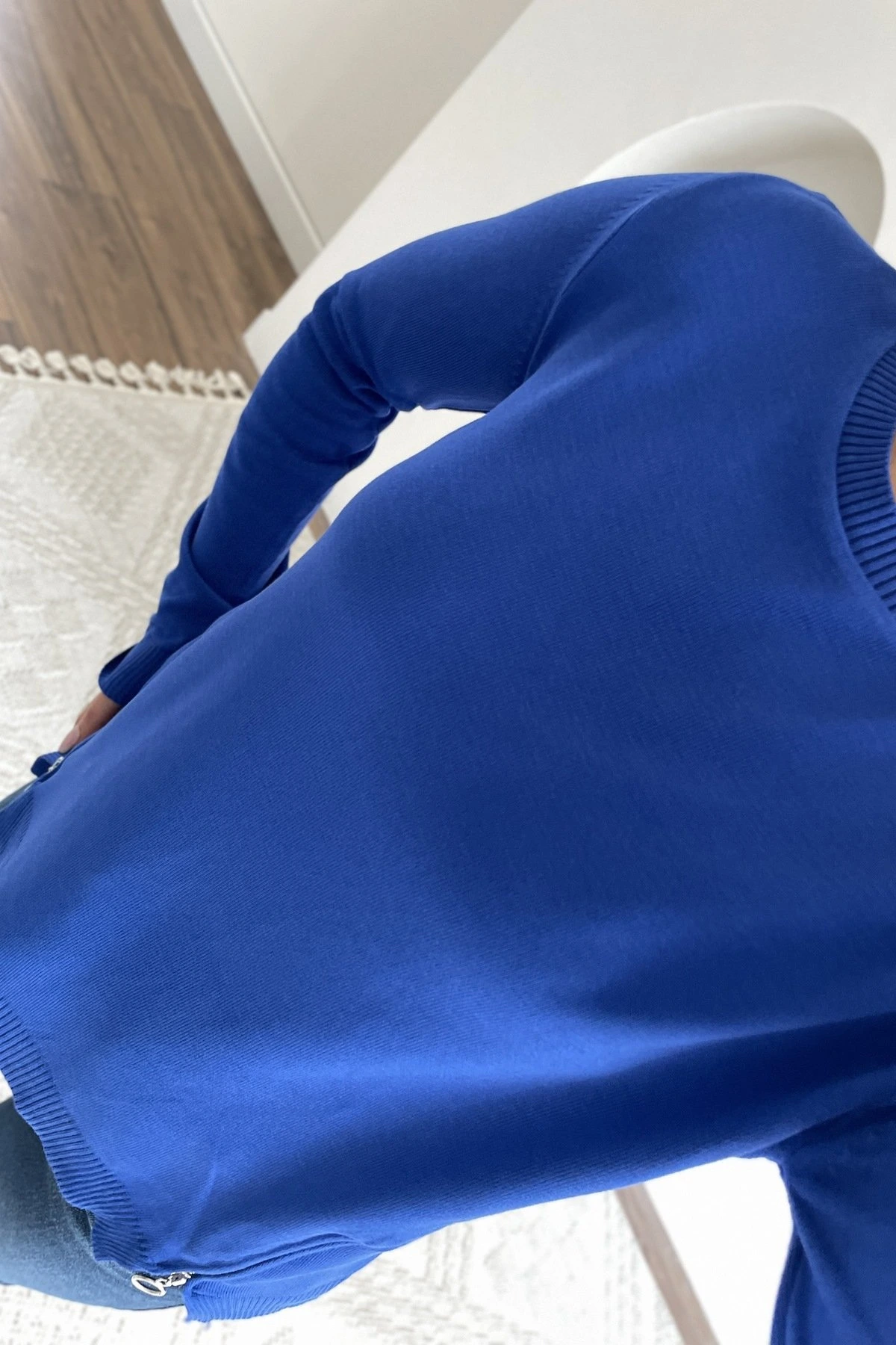 ETEK YAN FERMUARLI BİSİKLET YAKA VİSKON TRİKO – SAKS