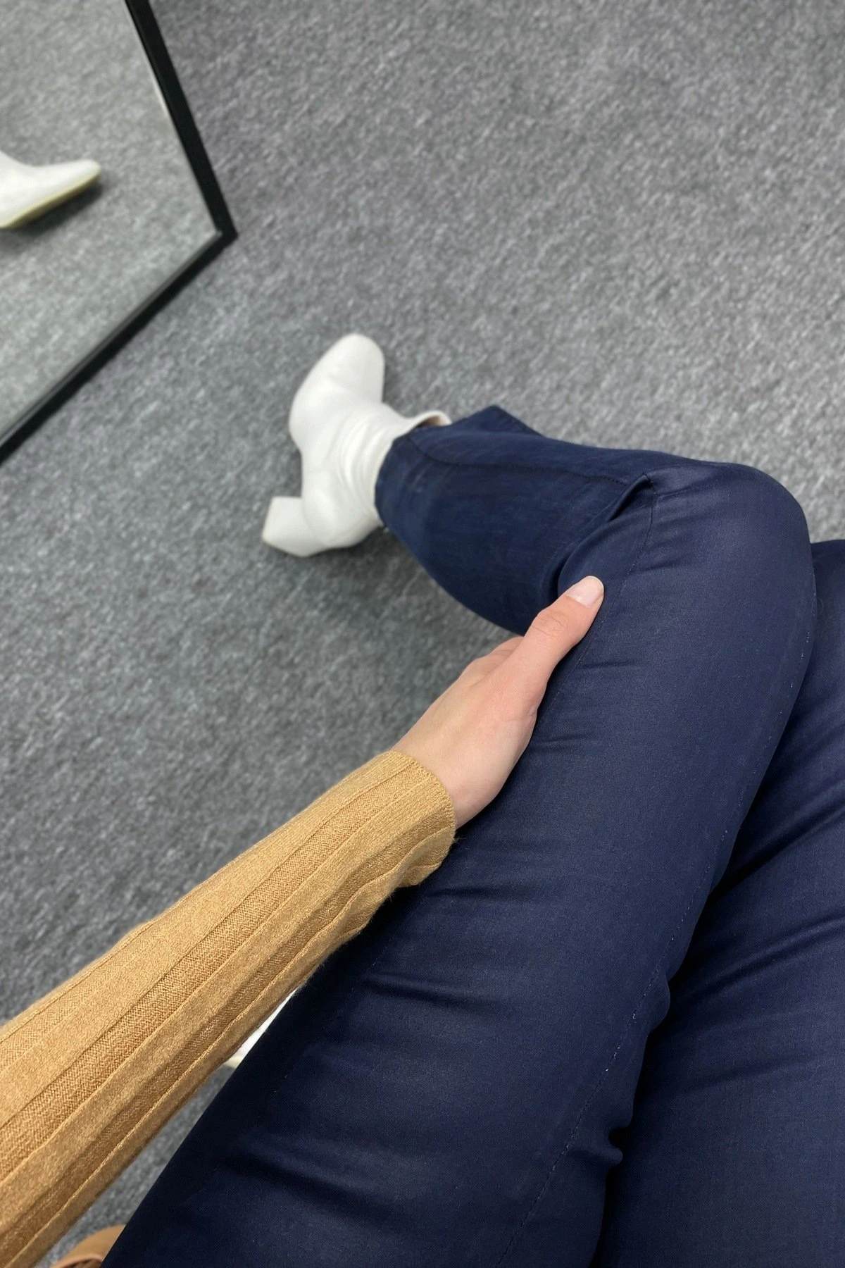 Modelin Üzerindeki Ürün, Serinin en küçük bedeni olan XS-S-26-34-36 Bedenleridir.