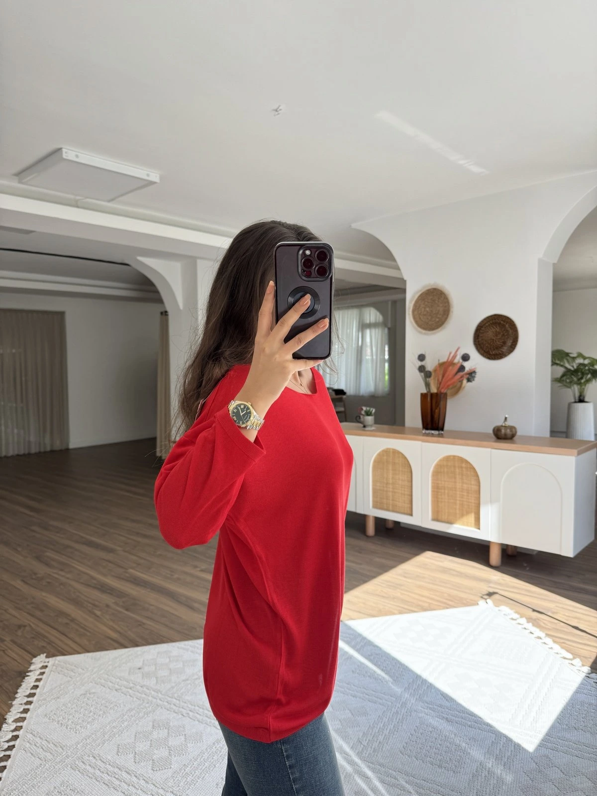 GENİŞ YAKA TRUVAKAR KOL İNCE VİSKON SALAŞ TRİKO – KIRMIZI