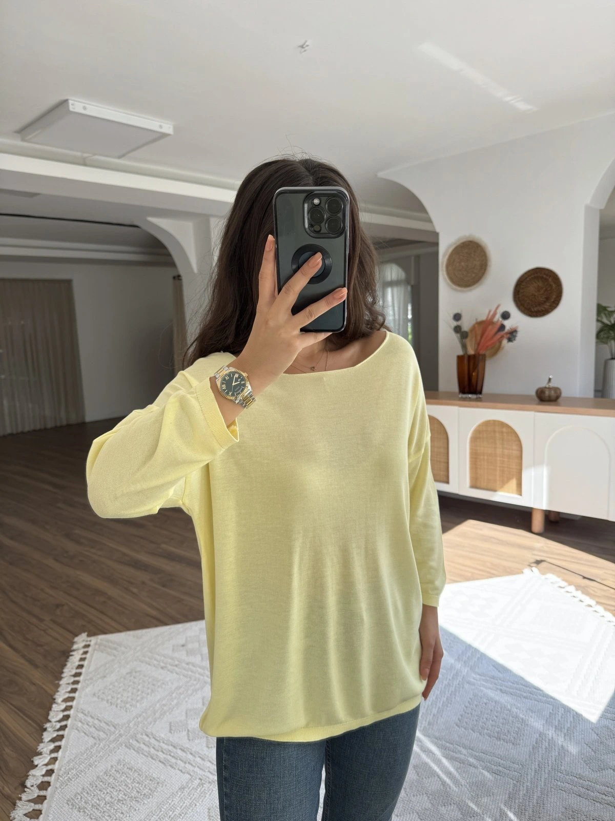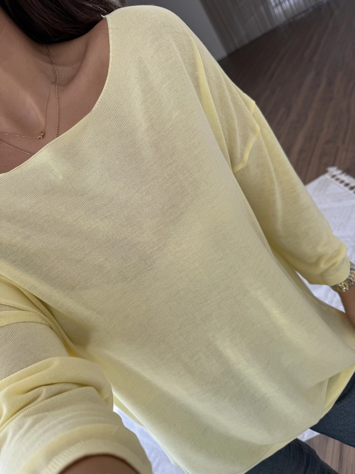 GENİŞ YAKA TRUVAKAR KOL İNCE VİSKON SALAŞ TRİKO – SARI