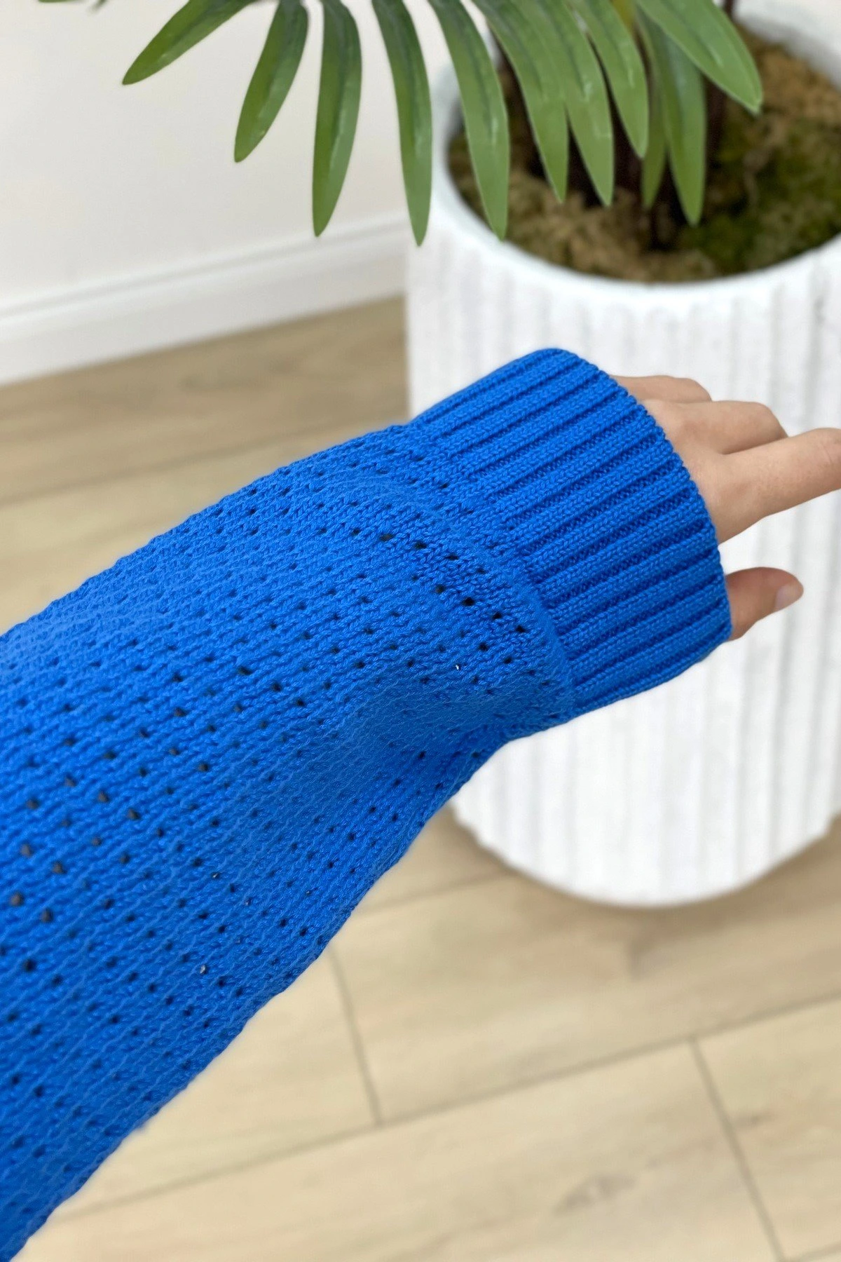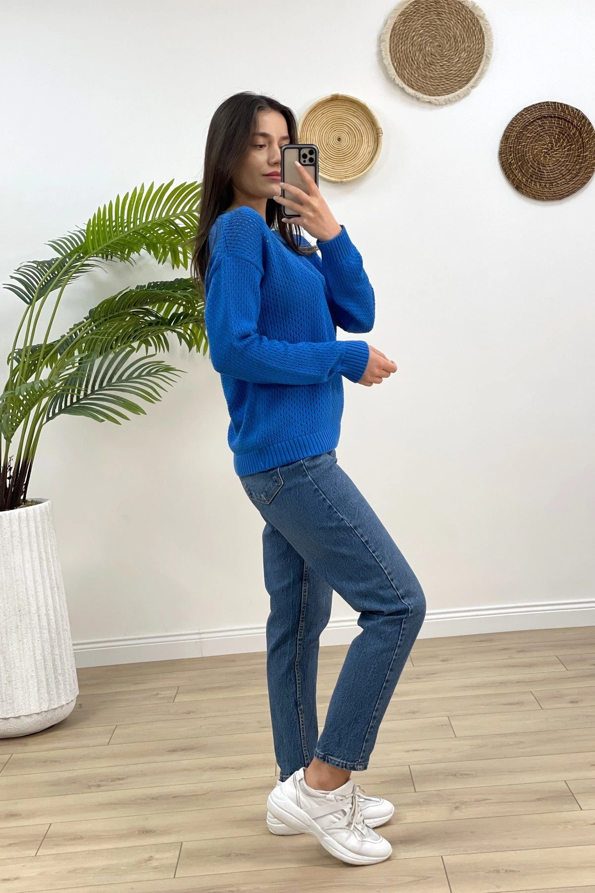 KARE YAKA DELİKLİ TRİKO – MAVİ