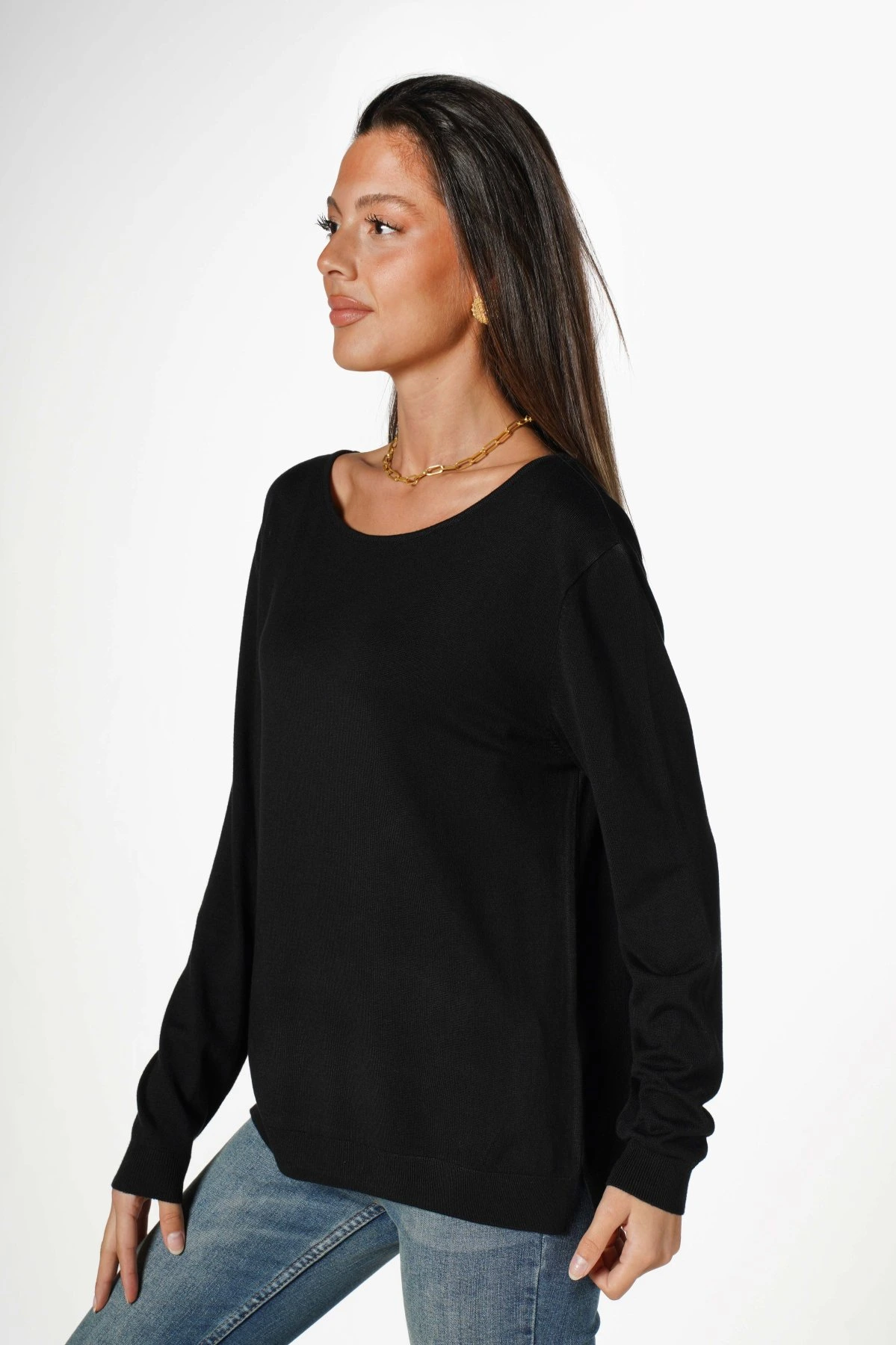 KAYIK YAKA ETEK YIRMAÇLI KAZAK – SİYAH