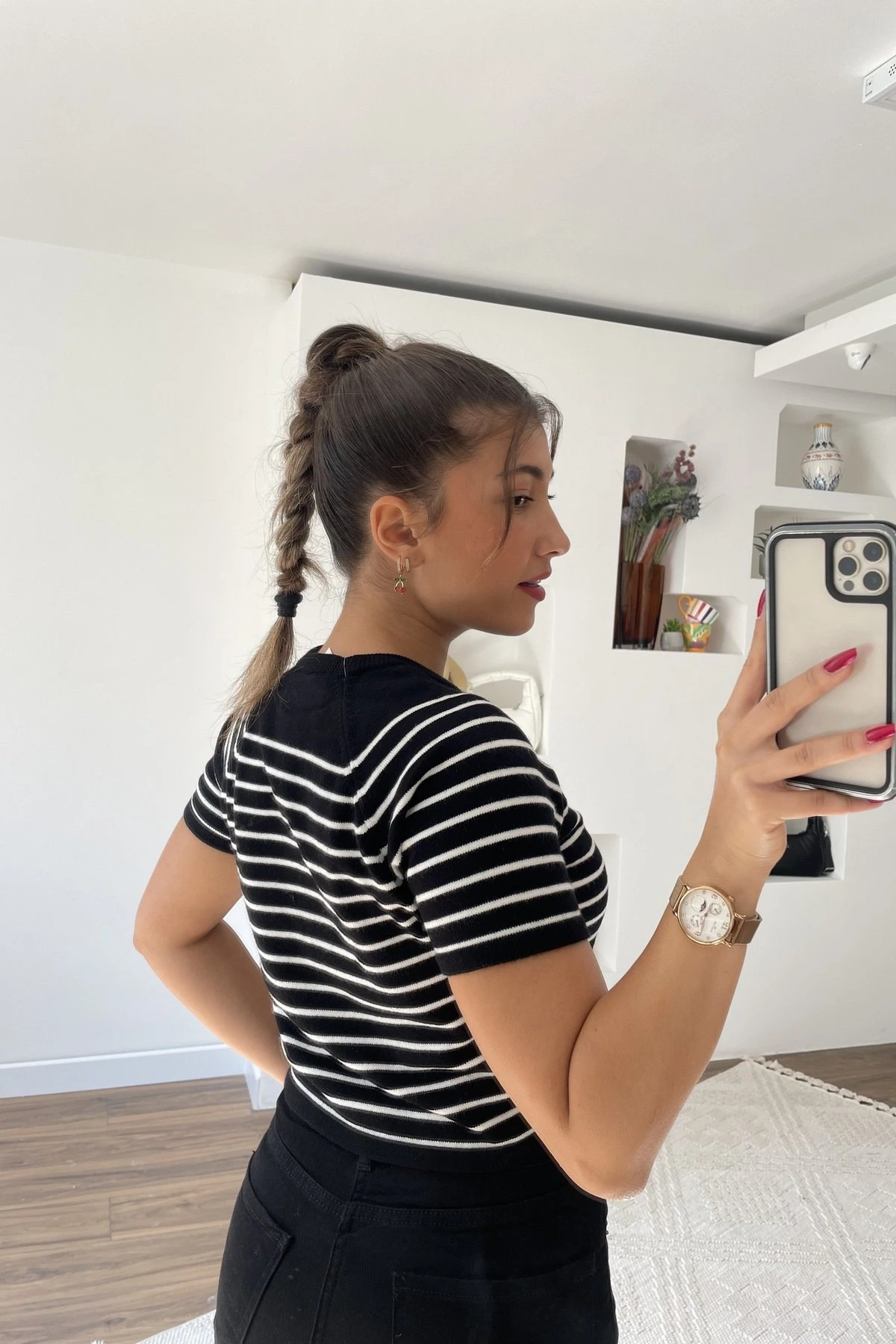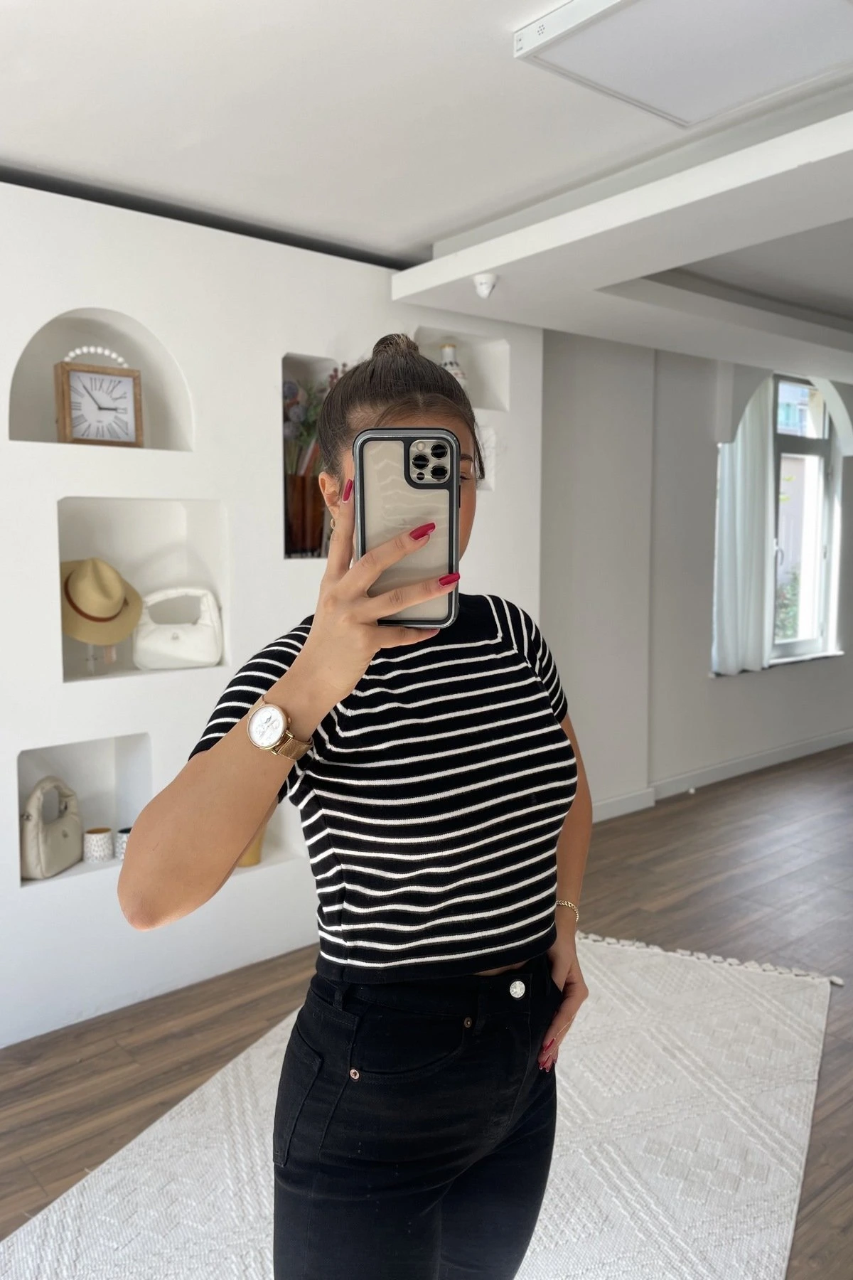 KISA KOL ÇİZGİLİ VİSKON TRİKO – SİYAH BEYAZ