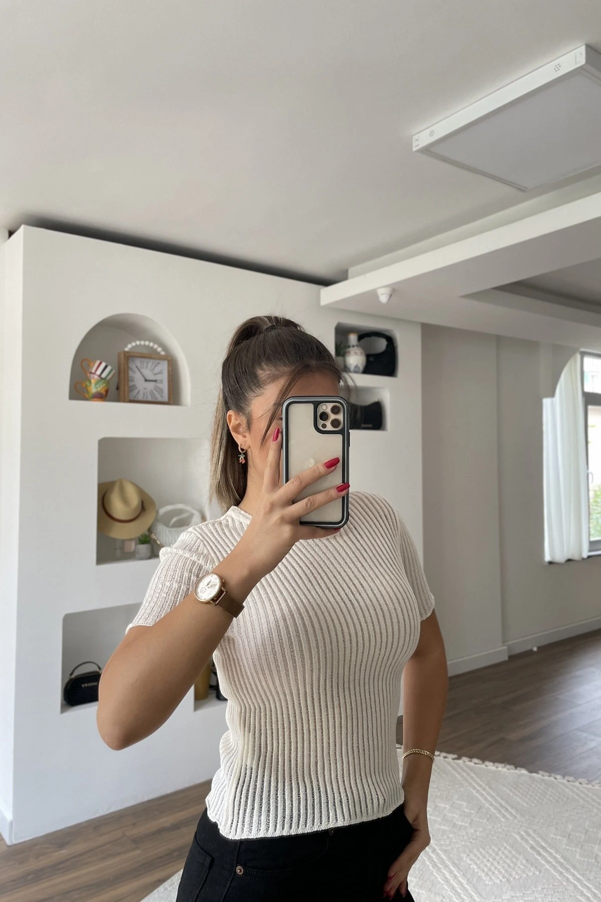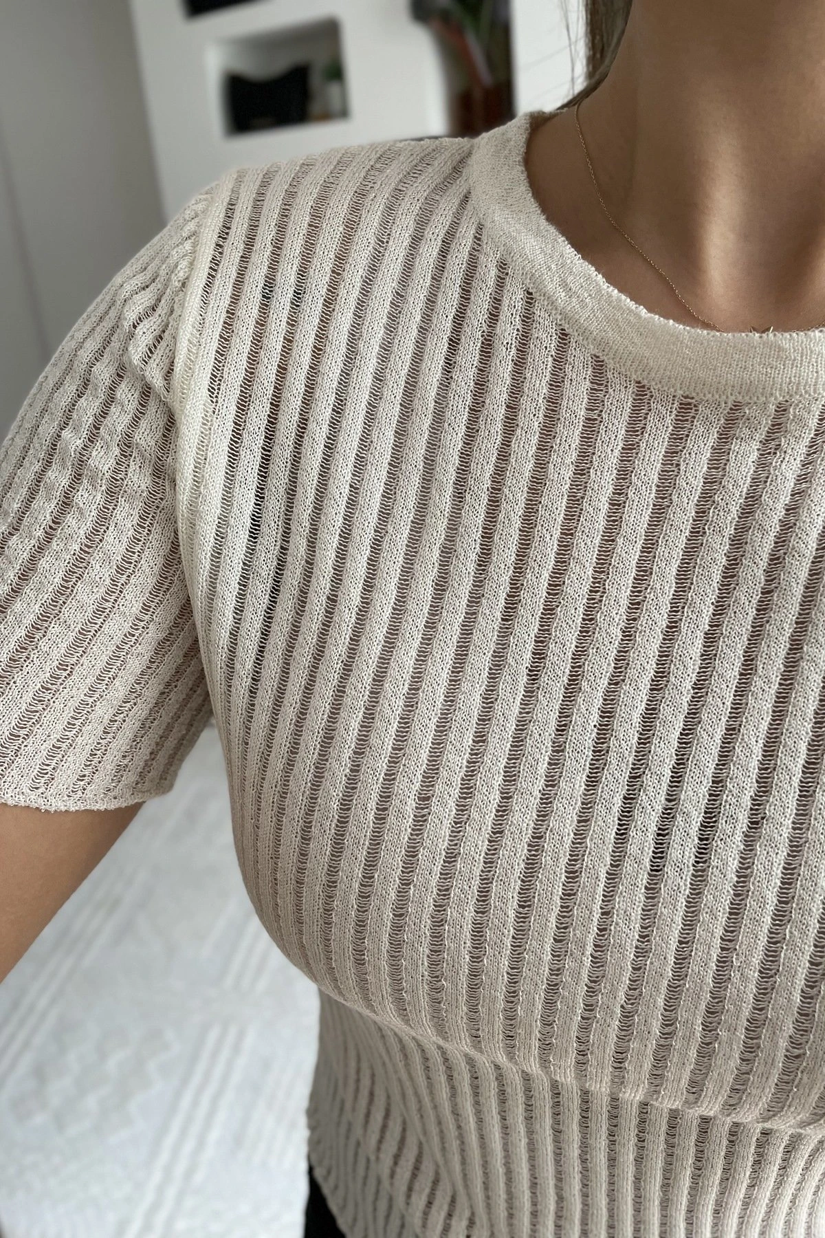 KISA KOL İNCE AJURLU FİTİLLİ TRİKO – KREM