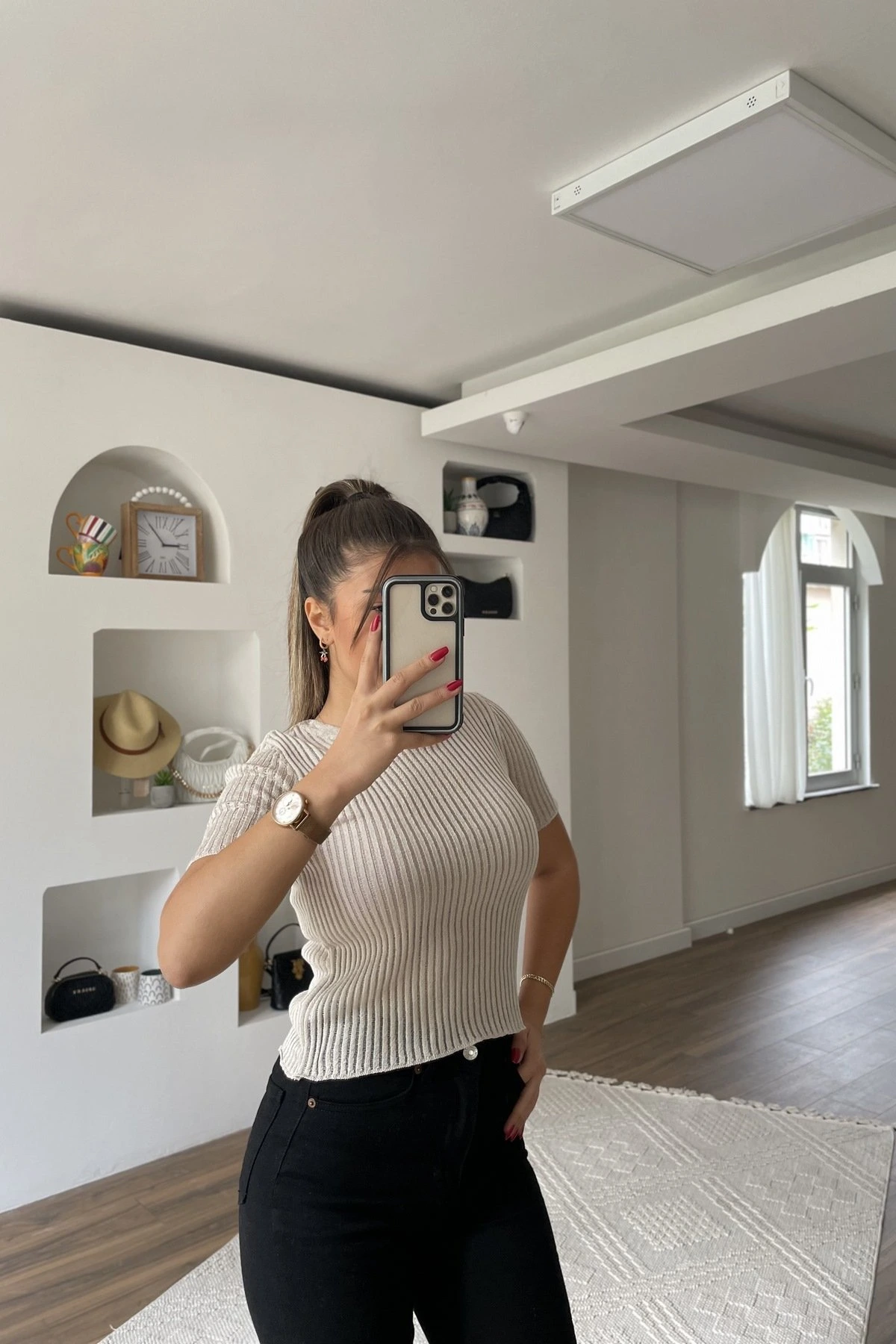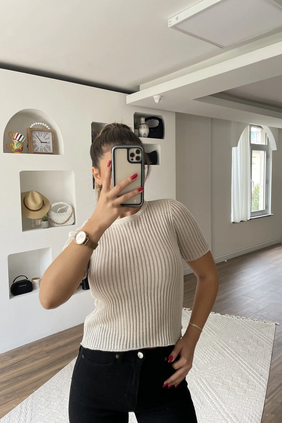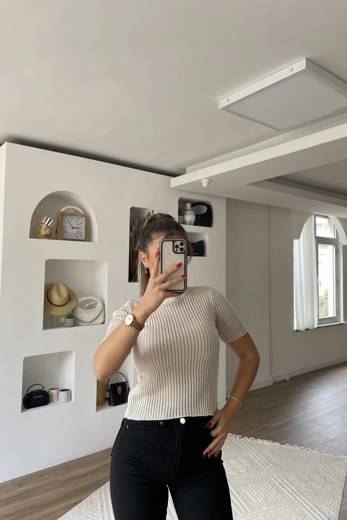 Modelin Üzerindeki Ürün bedeni instagramda story (hikayeler) de belirtilmektedir.
