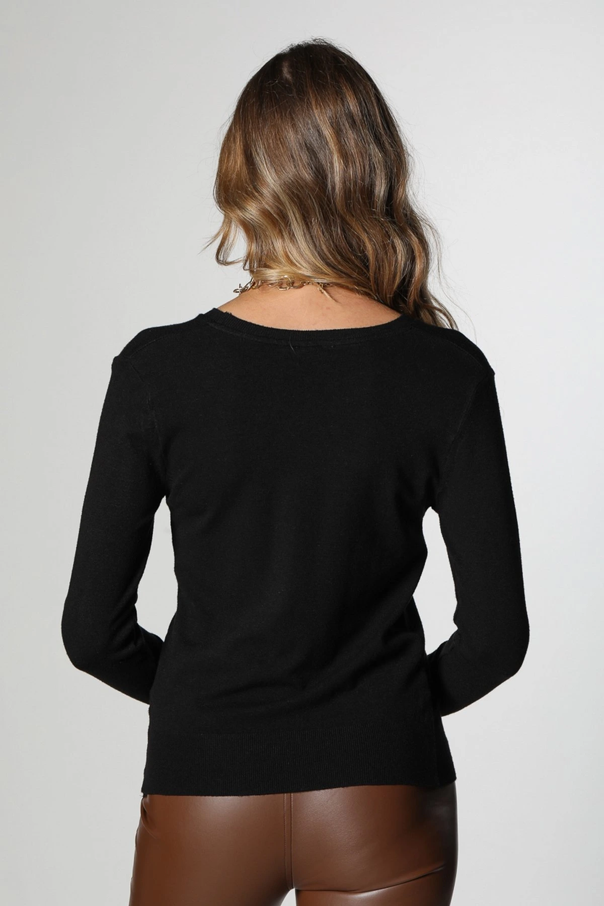 KOL DROPLU BİSİKLET YAKA TRİKO – SİYAH