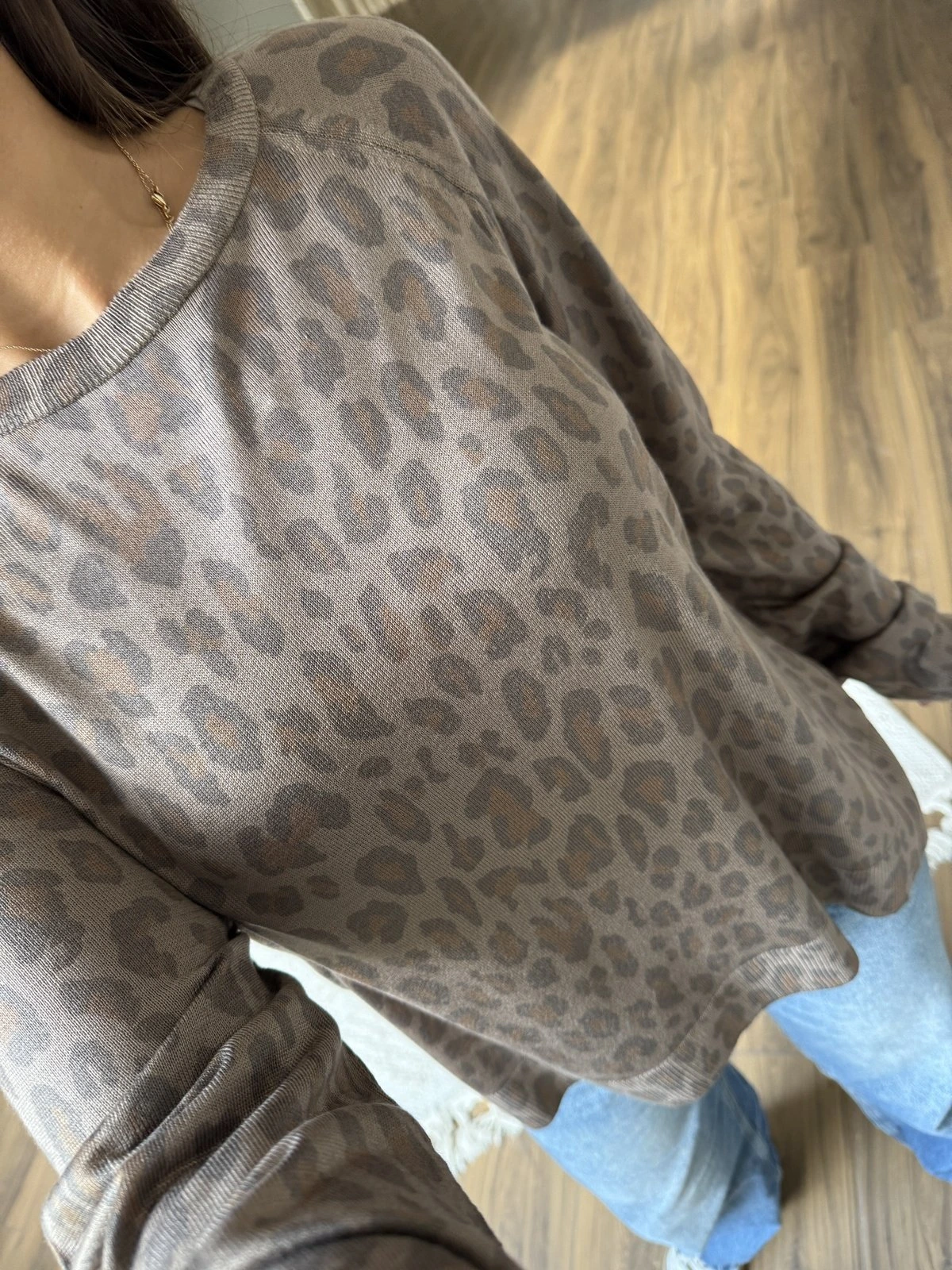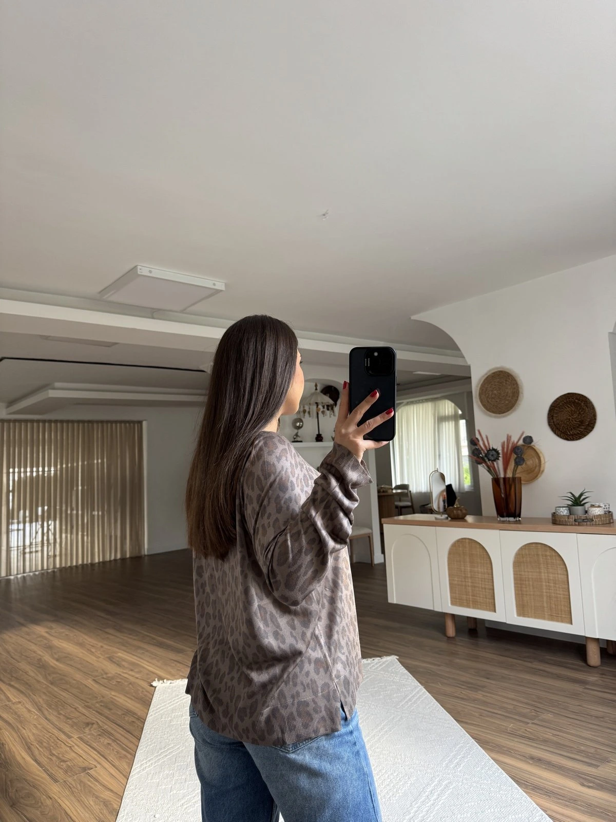 LEOPAR DESEN REGLAN KOL İNCE VİSKON TRİKO – VİZON